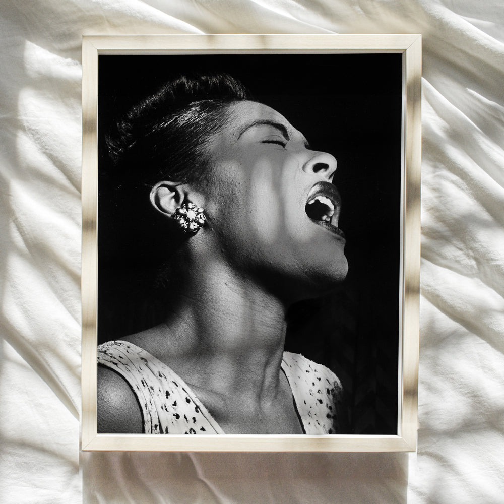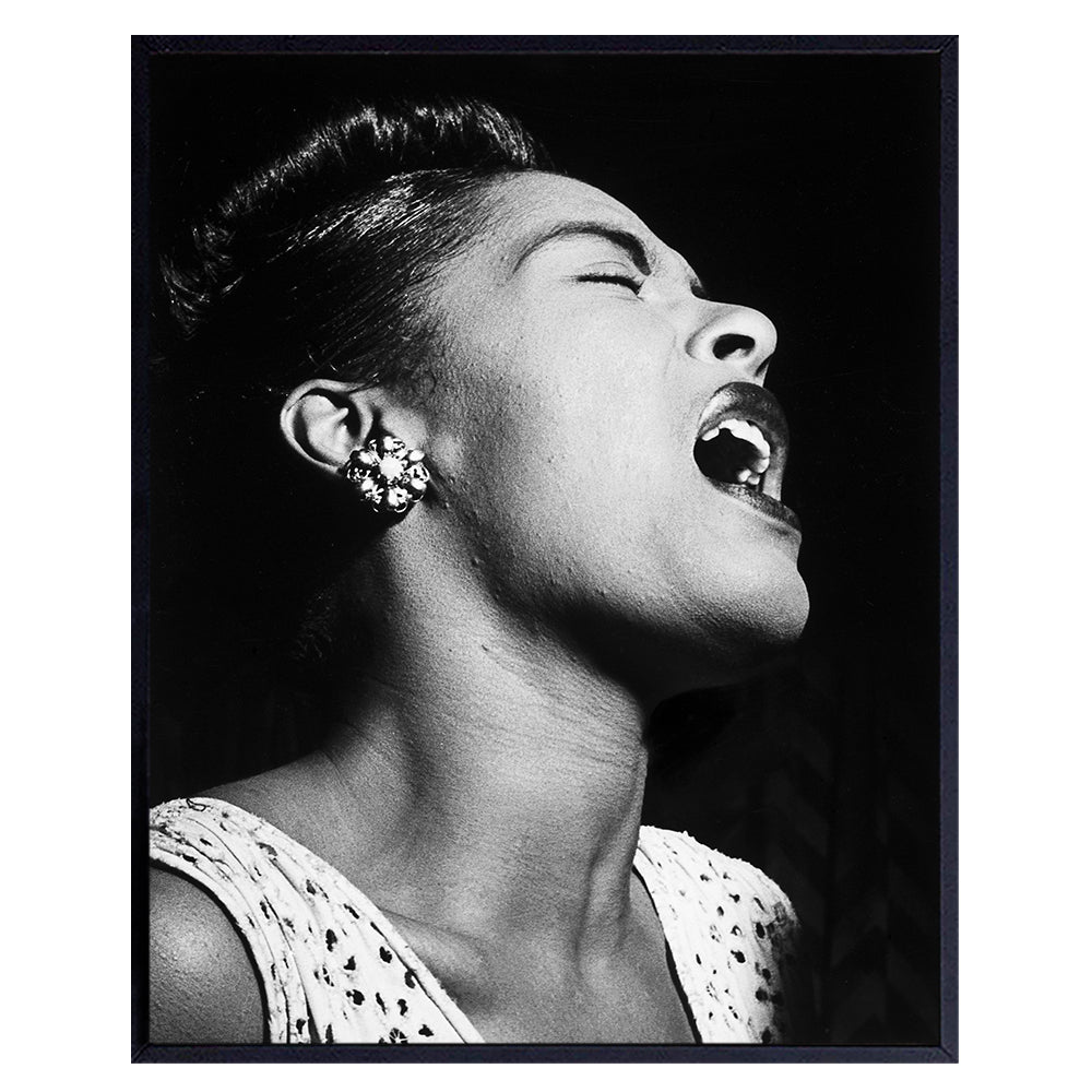 Billie Holiday Poster - Black African American Wall Art Decor - Famous Iconic Vintage Photo - Unique Gift for Singer, Performer, Black History Music Fan - 8x10 Jazz Wall Art for Bedroom, Living Room