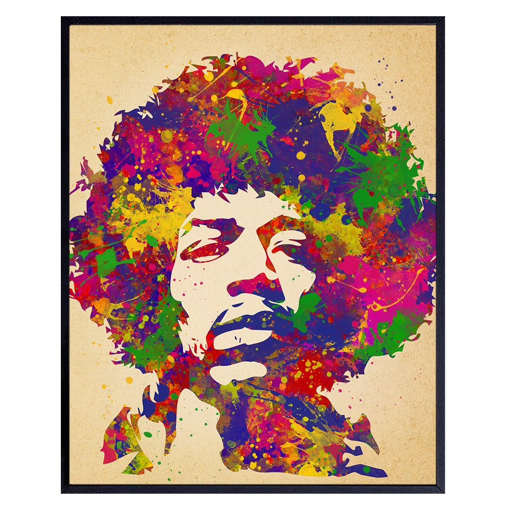 Jimi Hendrix Poster - 8x10 Psychedelic Experience Wall Art Decor for Men, Boys Bedroom, Living Room, Music Studio - Gift for Guitarist, Musician, Woodstock, Purple Haze, 60's Music Fan - UNFRAMED