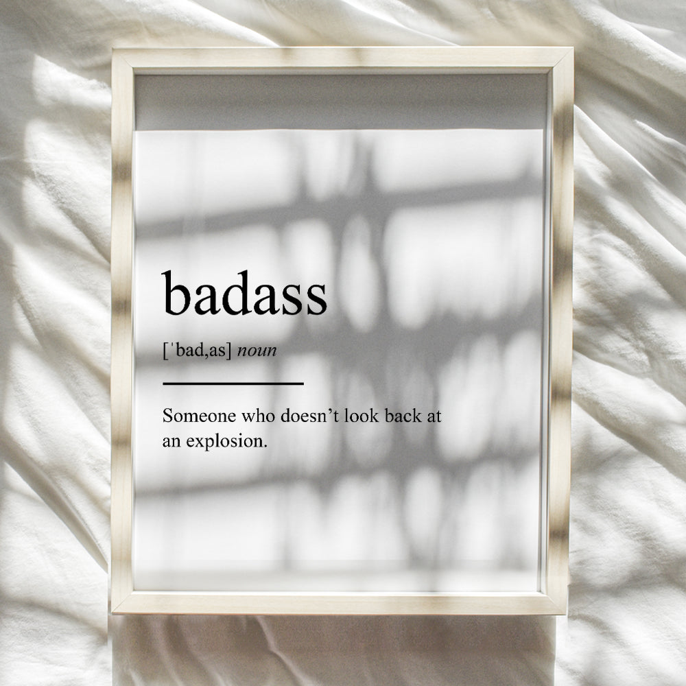 Badass Definition Wall Art, Home Decor - Macho, Tough Guy Poster, Print - Funny Unique Room Decorations for Game Room, Man Cave, Garage, Bar - Gift for Man, Men - 8x10 Photo Unframed