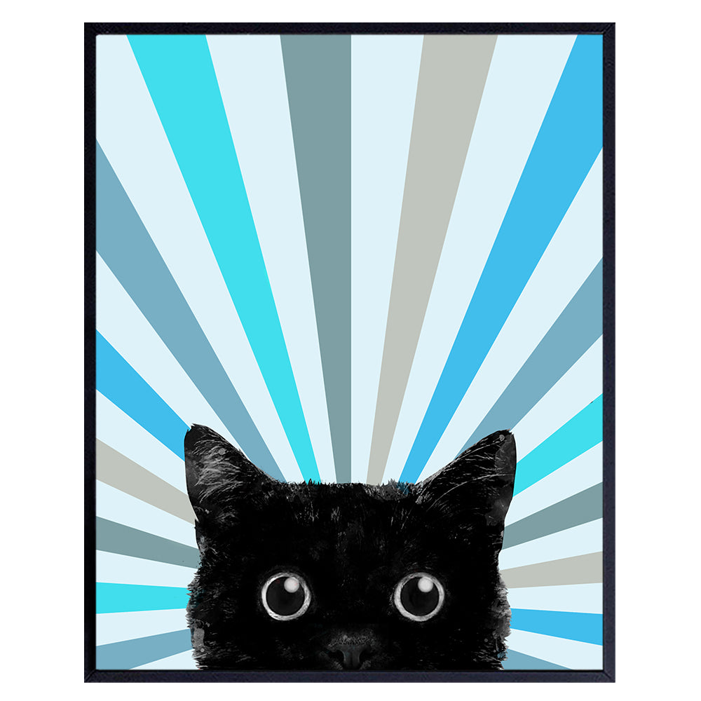 Retro Cat Themed Wall Decor - Cat Mom, Cat Lover Gifts - Cute Cat Poster, Cat Themed Gifts - Black cat Decor, Cat Wall Art - funny Cat Stuff for Women, Men - Cat Room Decor - Unframed