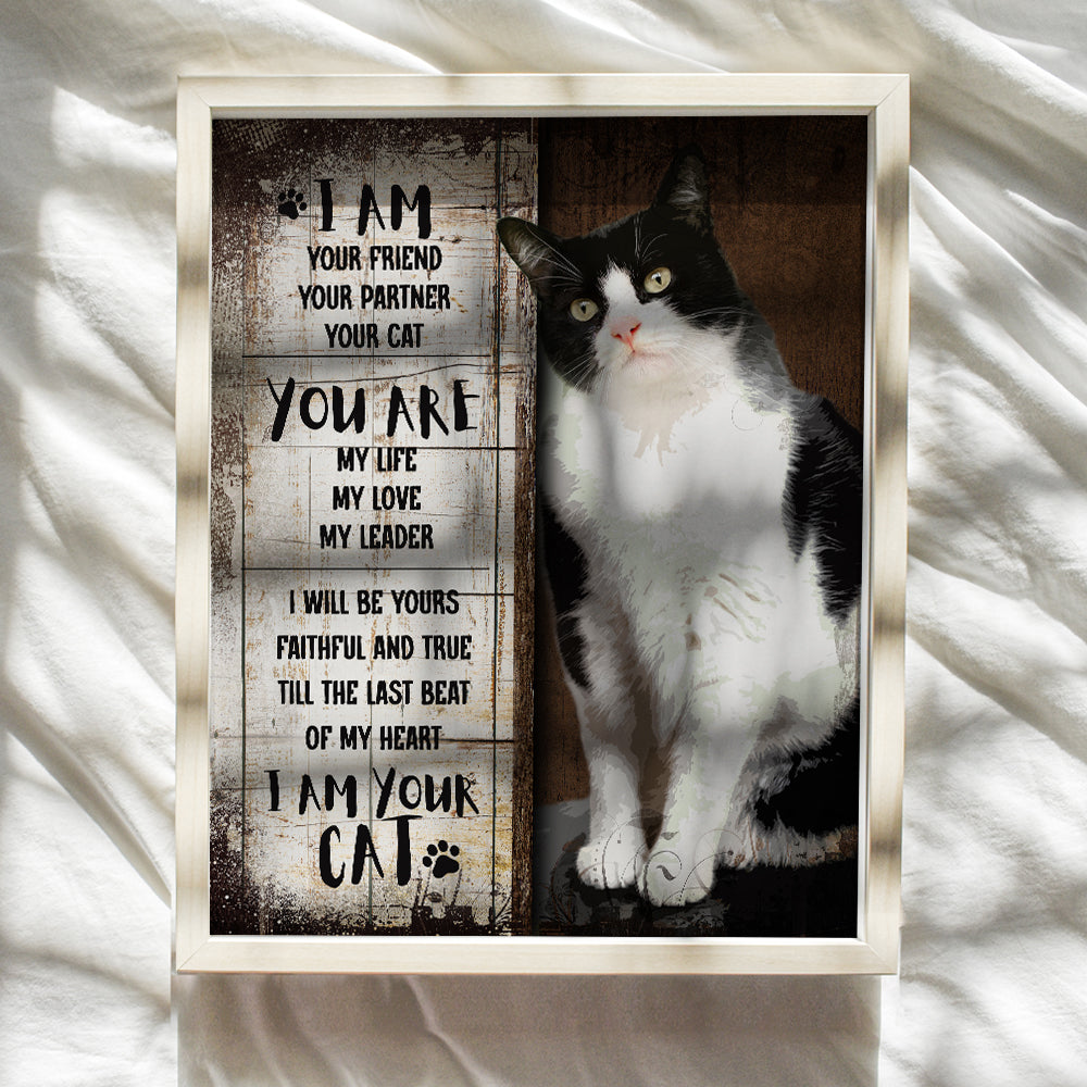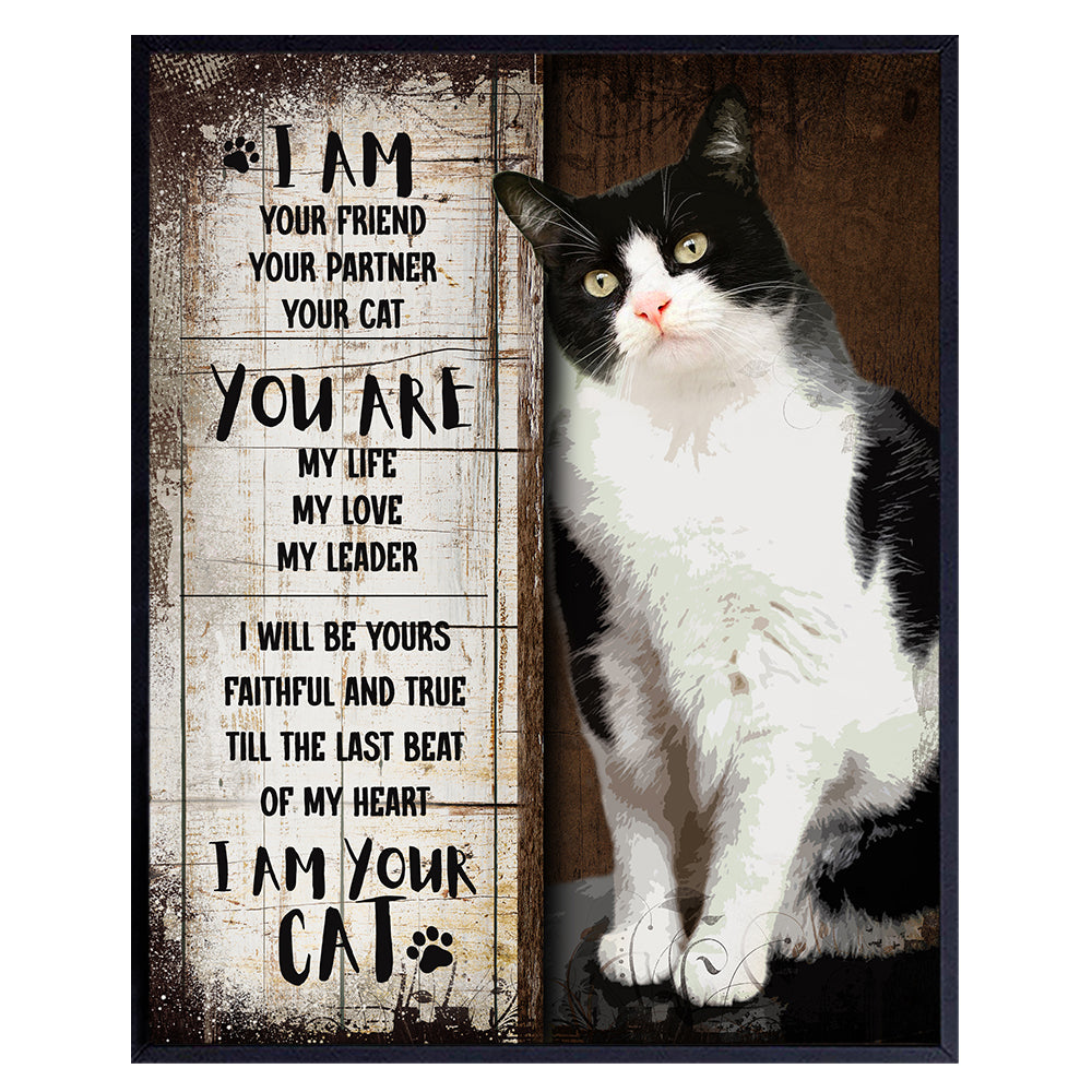 I Am Cat Wall Art - Cute Cat Rustic Farmhouse Decor - Cat Gifts for Women, Cat Mom, Cat Dad, Cat Lover - Shabby chic Animal Theme positive Quotes Wall Decor - Cute Cat Themed Boho Aesthetic Room Decor