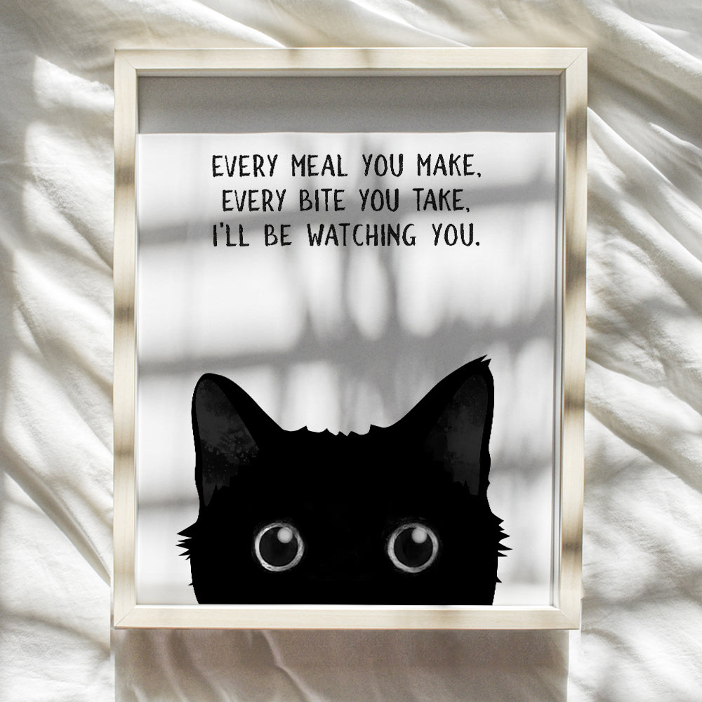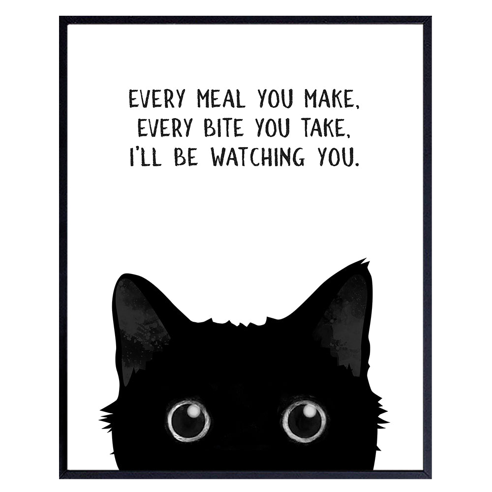 Black cat Wall Decor - funny Cat Stuff - Black Kitchen Decor - Cute Cat Wall Art - small Dining room Wall Decor - Cat Gifts for Cat Lovers - Cat Themed Decorations, Cat Poster - Cafe Wall Art 8x10