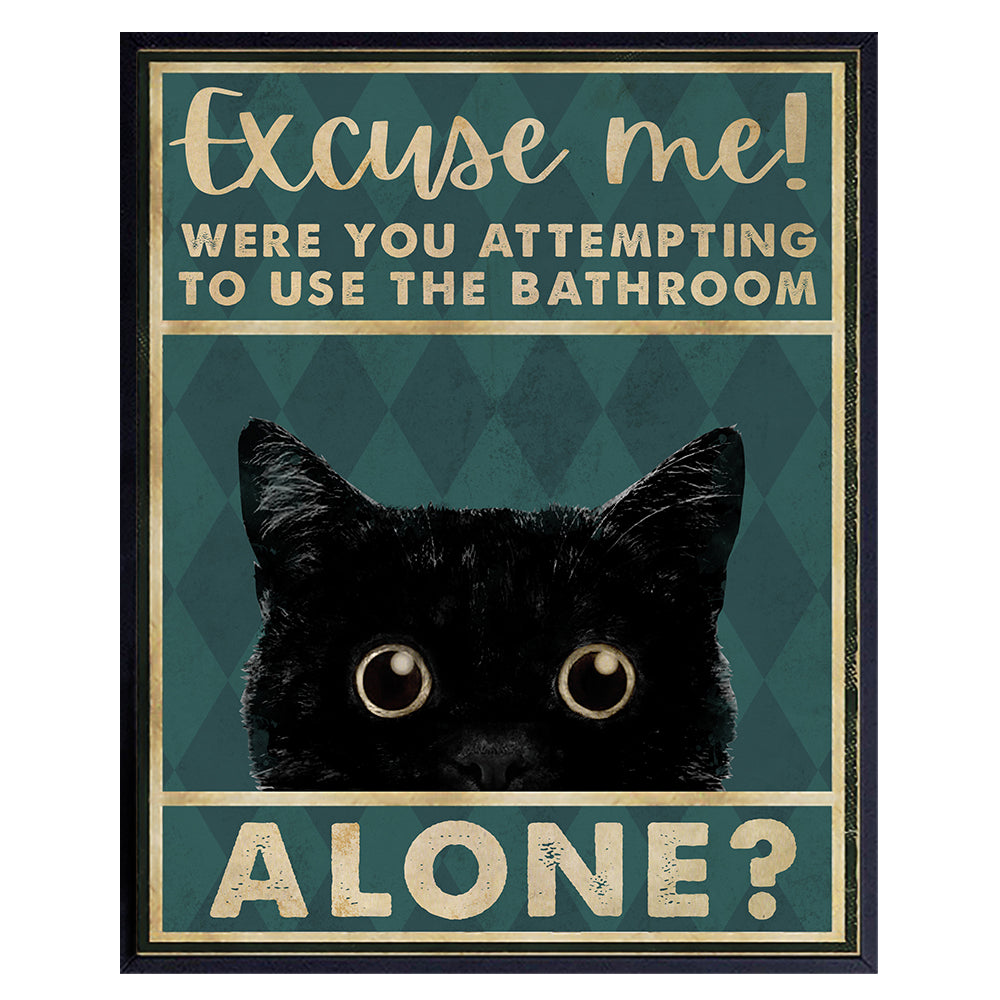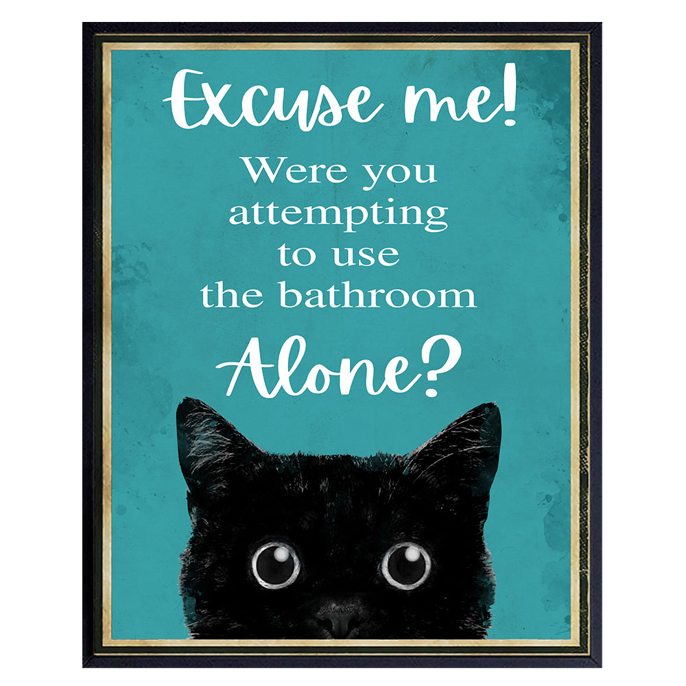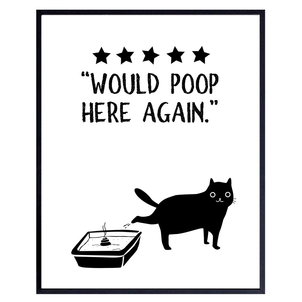 Cat Wall Decor Bathroom Decor - funny Cat Would Poop Here Again Bathroom Sign - Cute Cat Bathroom Wall Art - Cat Mom, Dad - Black Cat Wall Art - Black Bathroom Decor - Bathroom Accessories for Men