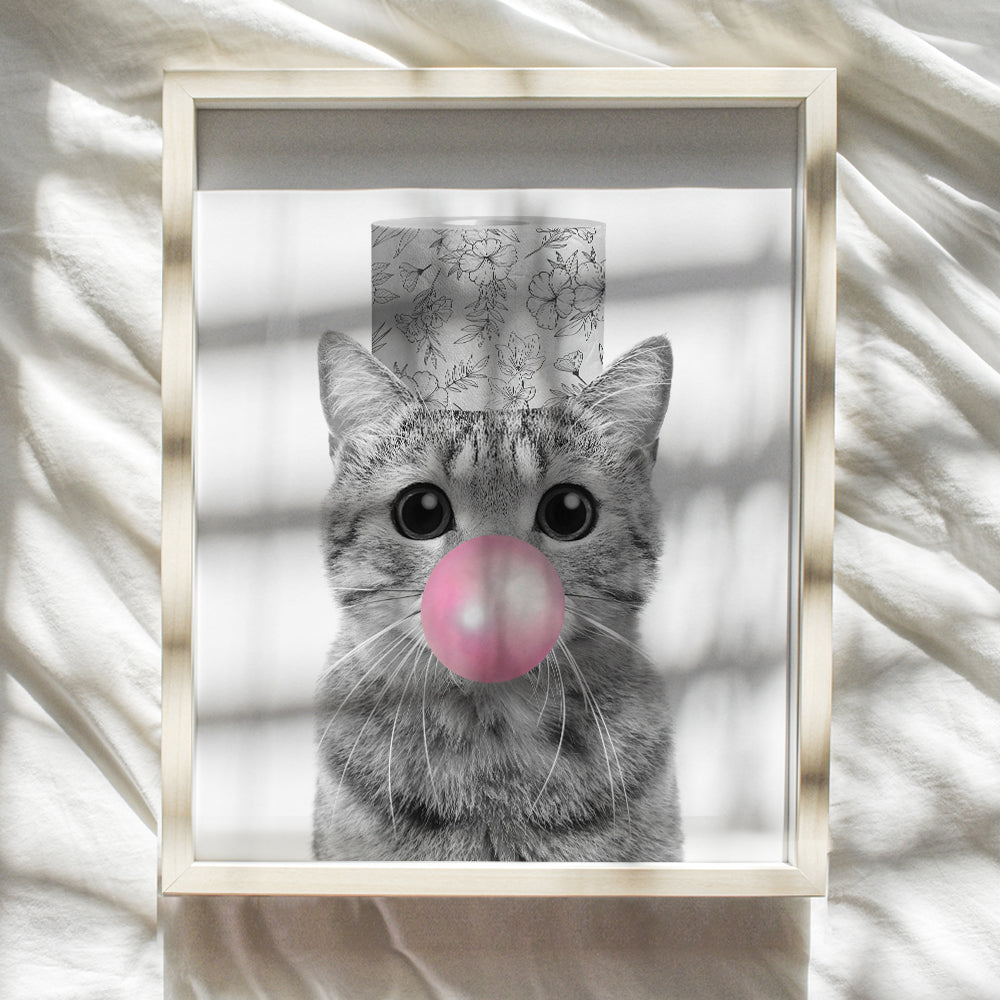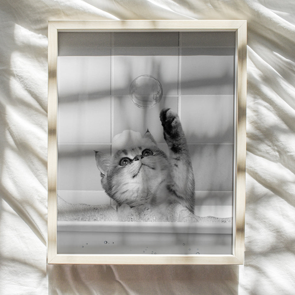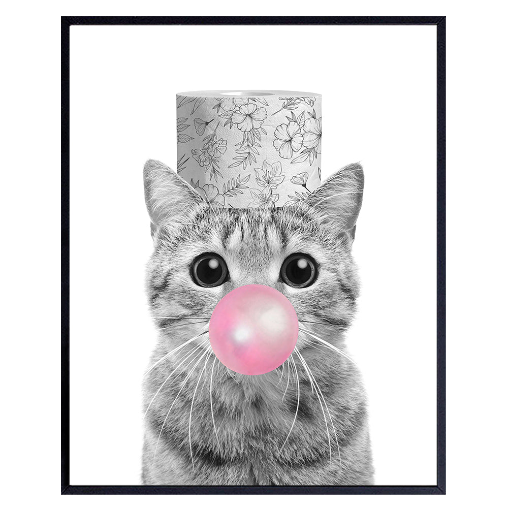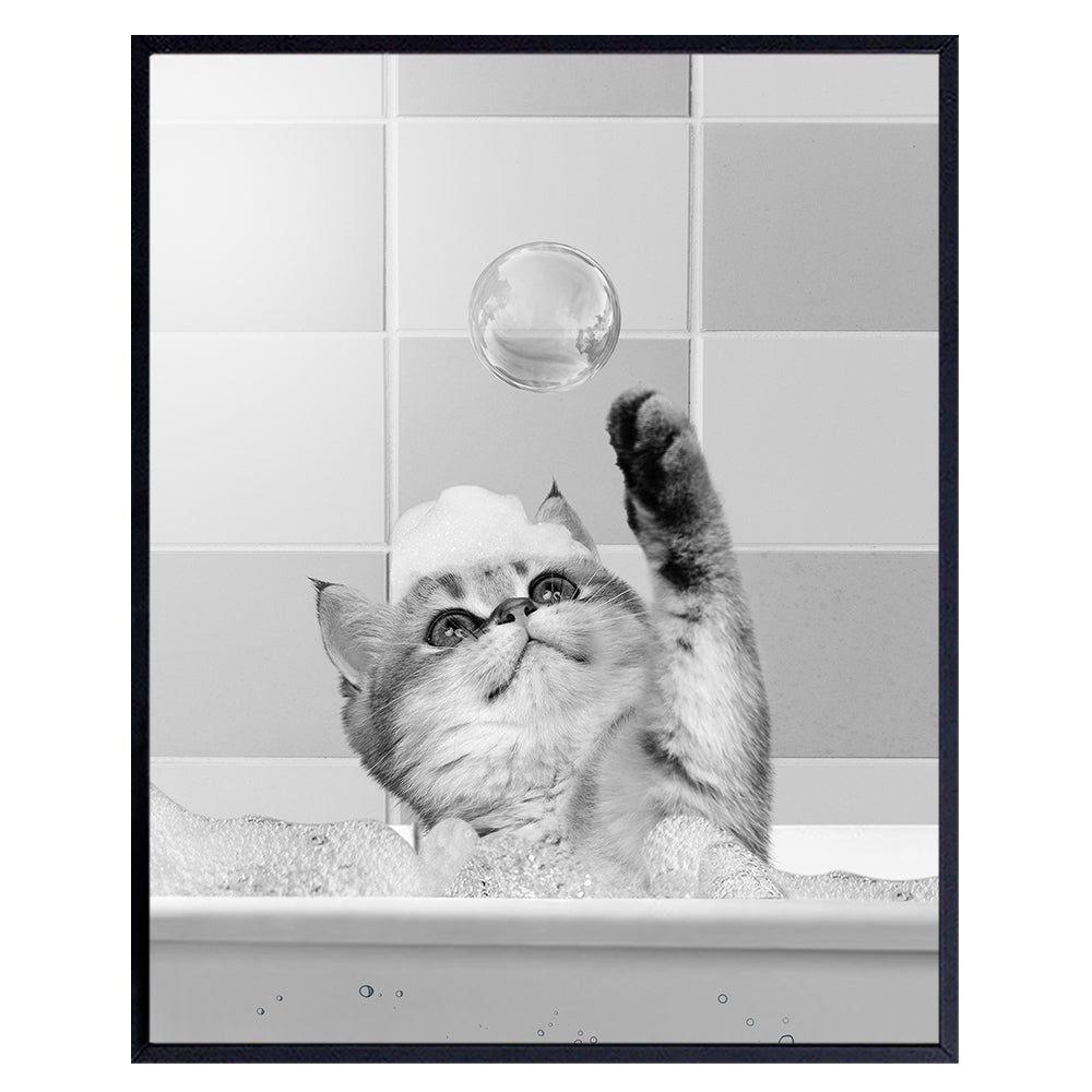 Cute Cat Bathroom Wall Art - Gray Bathroom Decor - funny Cat Gifts for Cat Mom, Dad, Women, Men - Modern Bathroom Pictures for Kids Bathroom - Yellowbird Art & Design Kitty Cat Bathroom Accessories