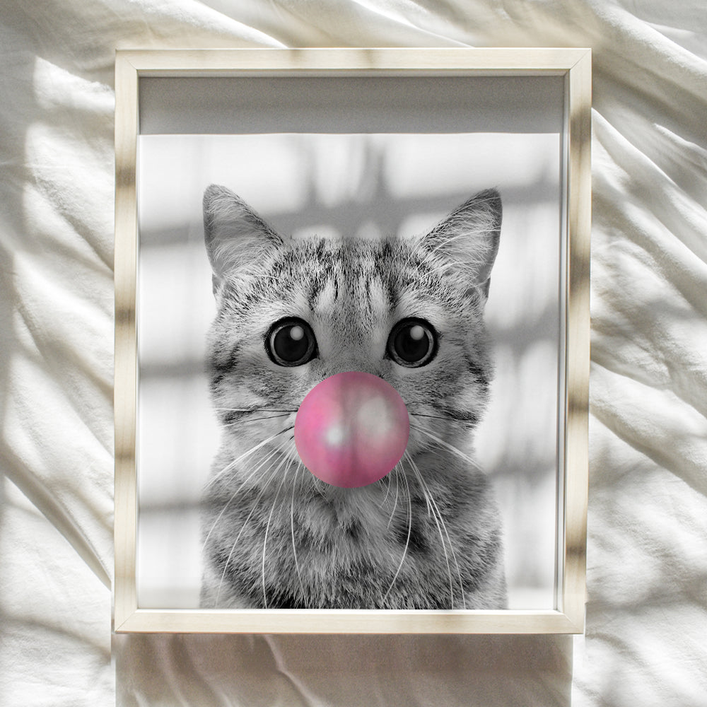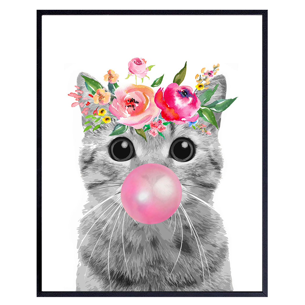 Tabby cat Wall Art - Cute Cat Nursery Wall Decor for Girls Bedroom, Kids Room - Pink Girly Kitty, PussyCat, Kitten Art - Cat Lover Gifts for Women - Adorable Cat Wall Art for Girl - Unframed