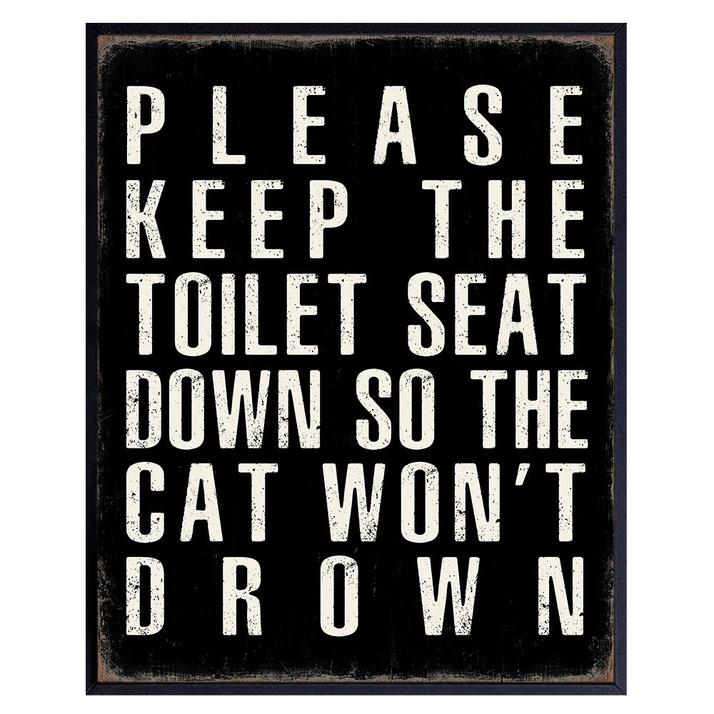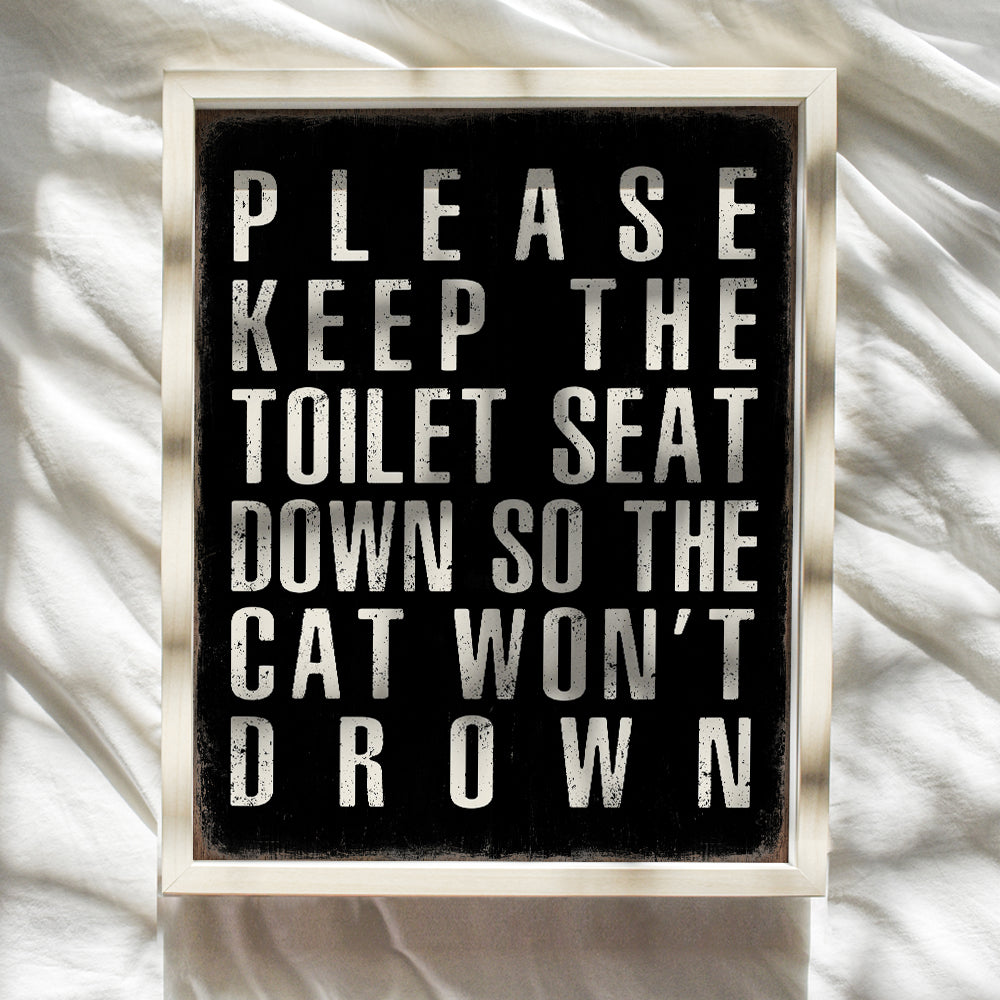 Cat Bathroom Decor funny Sayings - funny Quotes Wall Decor for Men, Women - Bathroom Sign Rustic Decor - Cat Themed Gifts for Cat Mom, Cat Lover - Powder room Decor - Put the Toilet Seat Down Sign