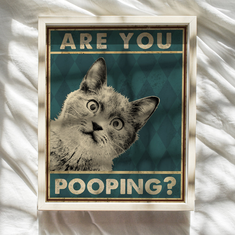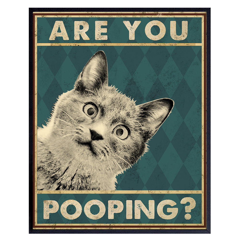Cute Kitty Wall Decor - Restroom Sign for Women - Cute Cat Themed Powder Room Decorations - Unique Bathroom Wall Decor for Cat Lovers - Funny Bathroom Decor - Cat Poster, Cat Wall Art