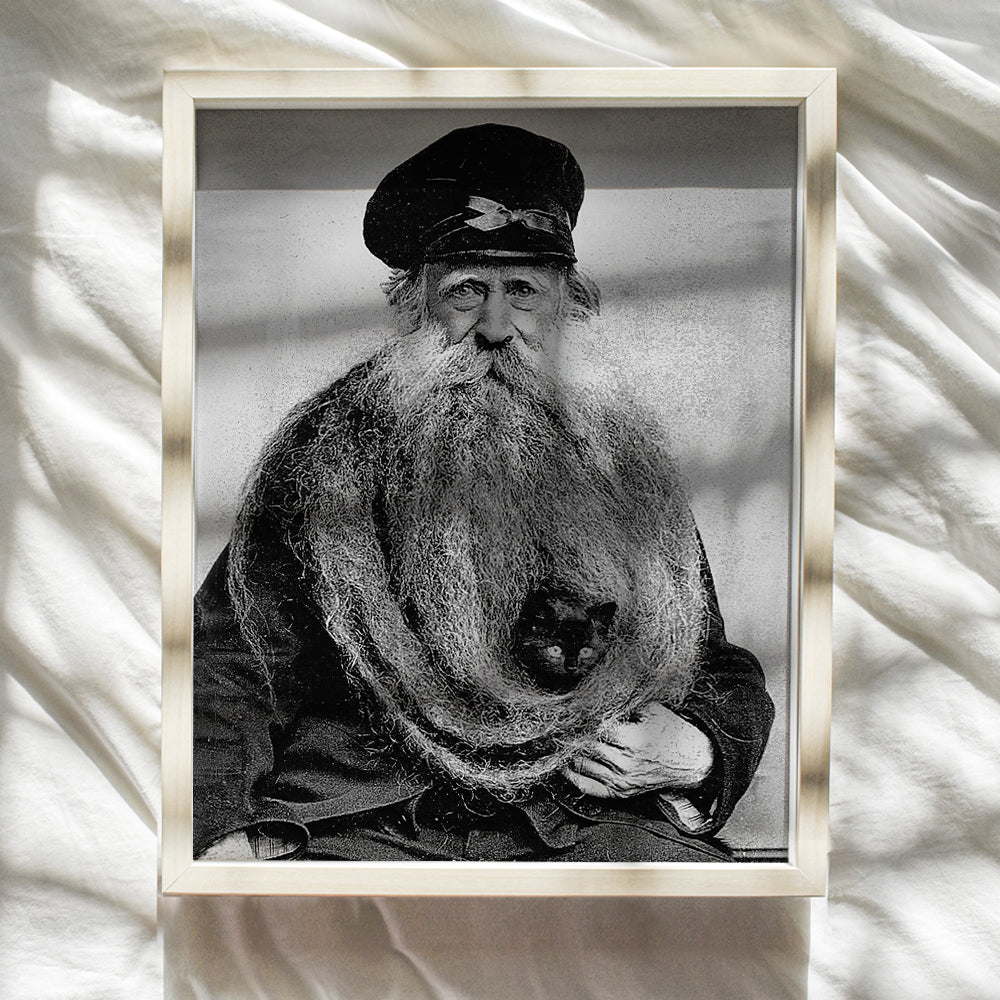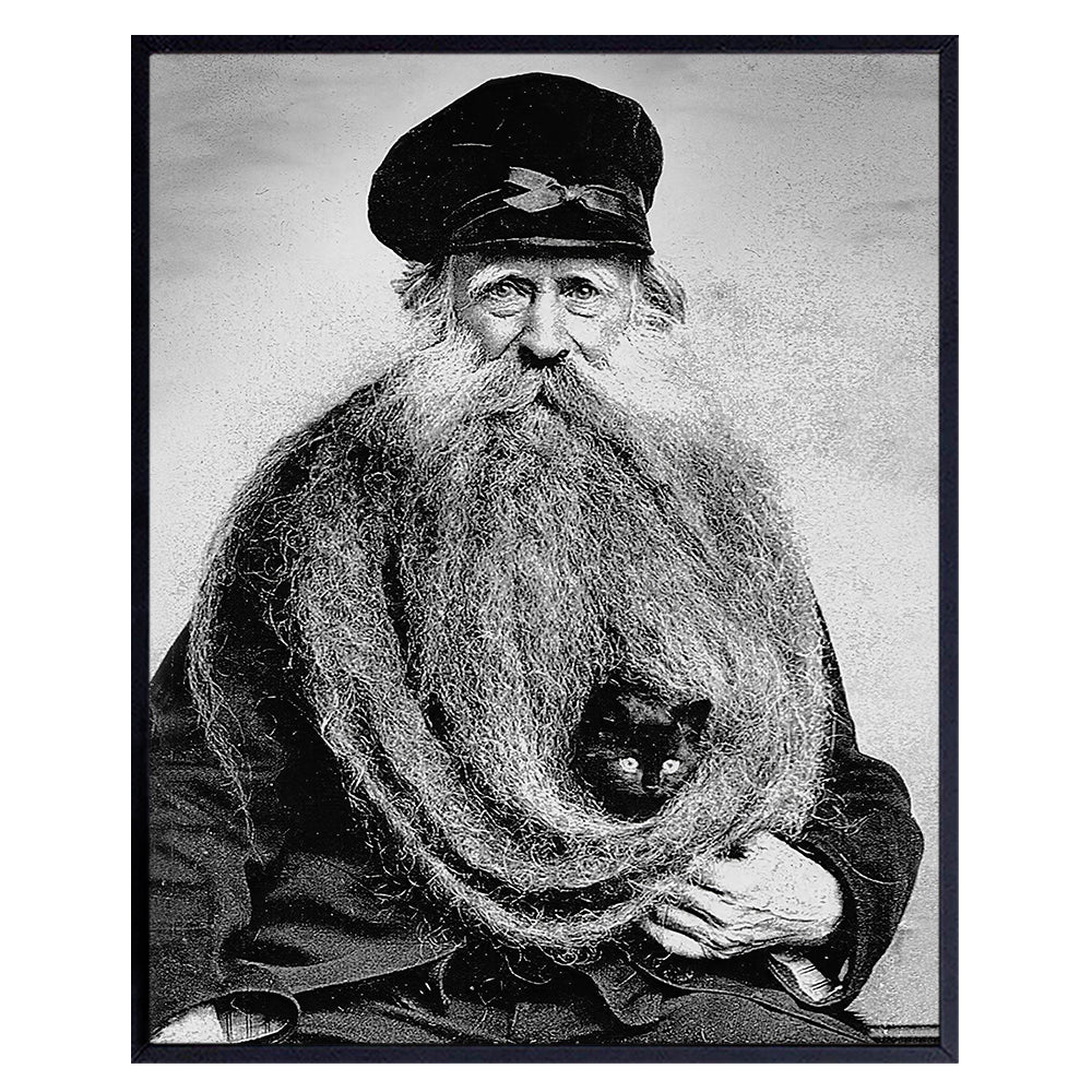 nautical Wall Decor - Vintage Sea Captain w/Black cat - Ocean Themed Wall Art - Beach house Decor - Weird Creepy Cat Lover Gifts for Men - Cat Themed Coastal Wall Decorations Poster Print