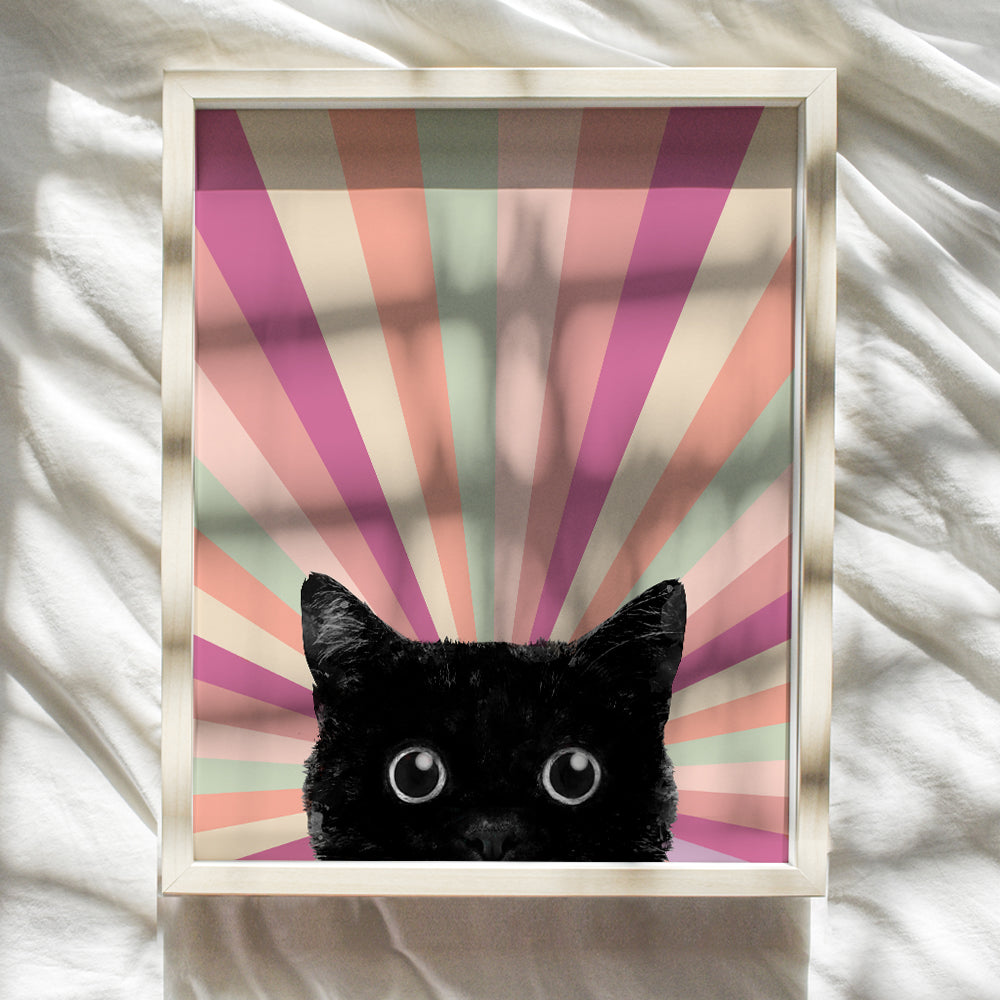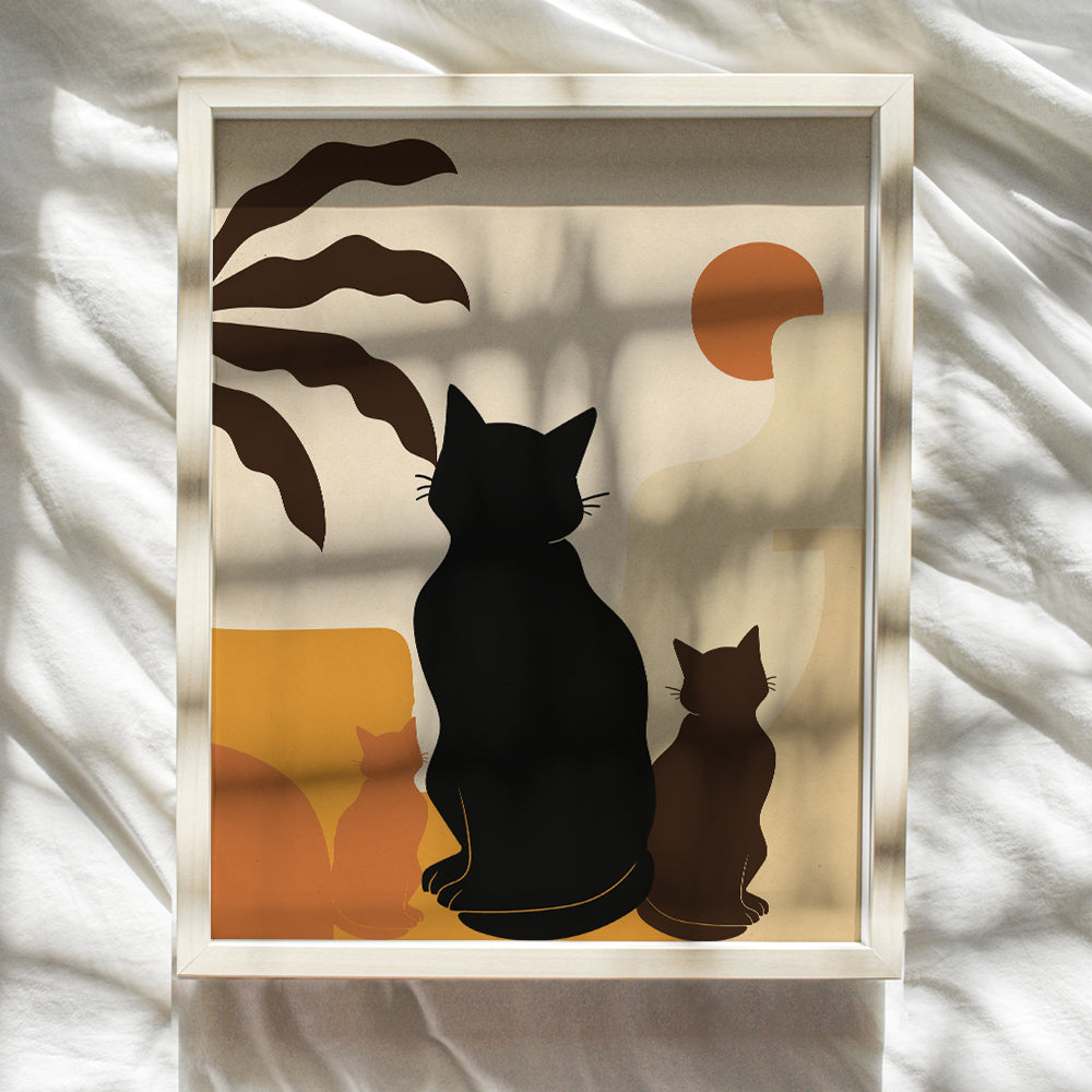 Mid century modern Cat Art - Boho Wall Decor - Cute Cat Wall Decor Aesthetic Wall Decor - Minimalist Art - Cat Gifts for Women, Cat Mom, Cat Lover - Boho-chic Cat Wall Decor - Retro style Abstract Art