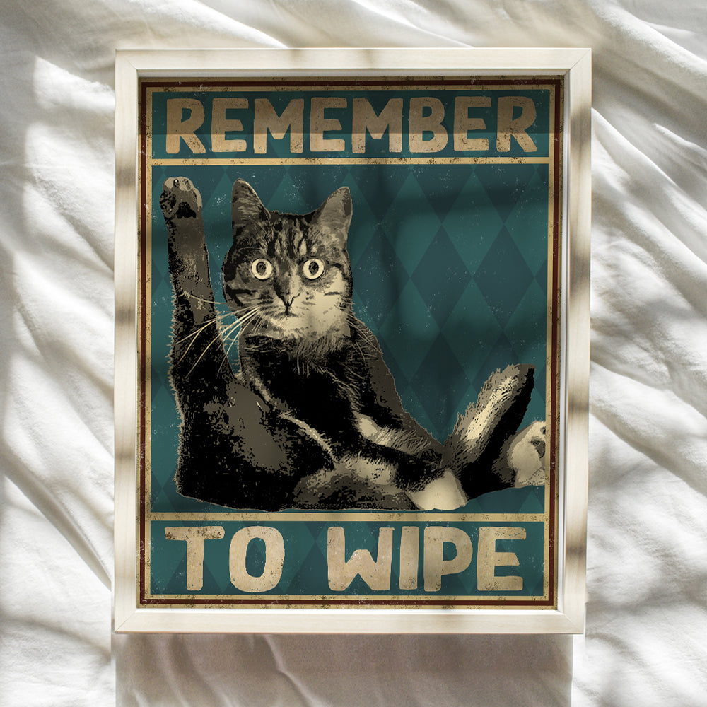 Funny Cat Bathroom Wall Art - Cat Poster for Small Bathroom Decor - Restroom Wall Decorations - Bath Wall Art - Powder room Decor - Cat Themed Gifts - Funny Bathroom Signs - Remember to Wipe
