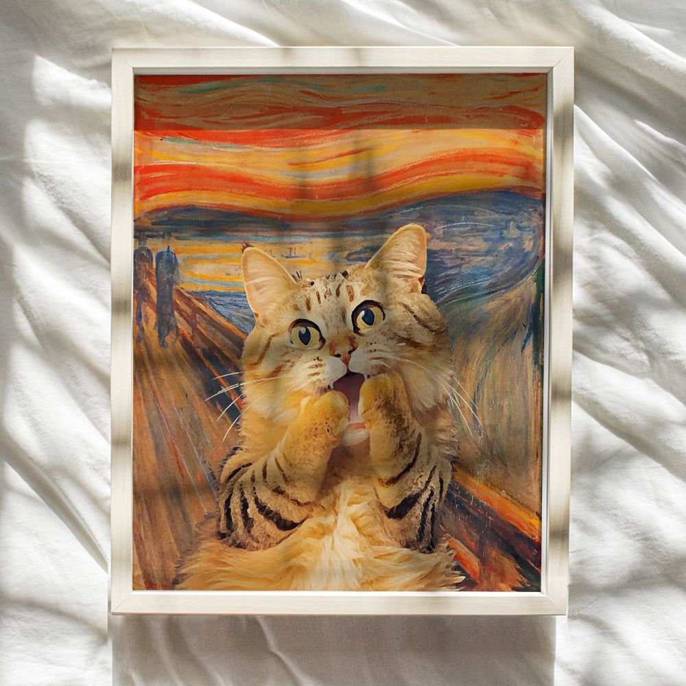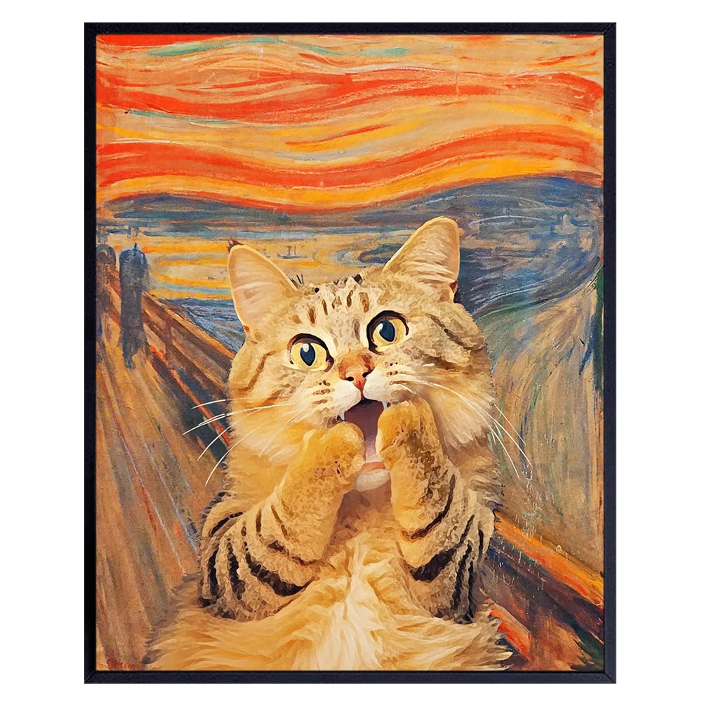 Edvard Munch Cat Wall Decor - The Scream Cat Decorations, Orange Cat Decor, Cat Room Decor - Tabby Cat Wall Art - funny Cat Stuff, Cat Themed Gifts for Cat Mom, Cat Dad, Cal Lover - Cute Cat Poster