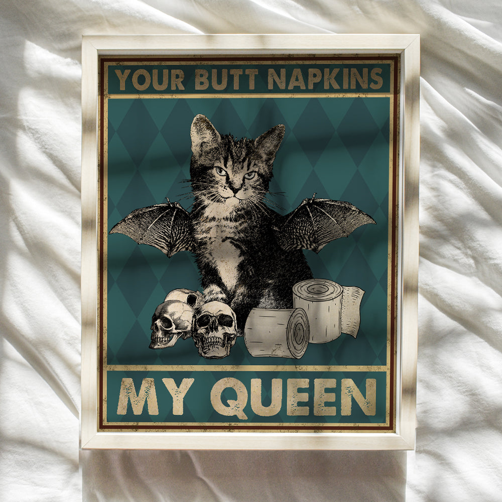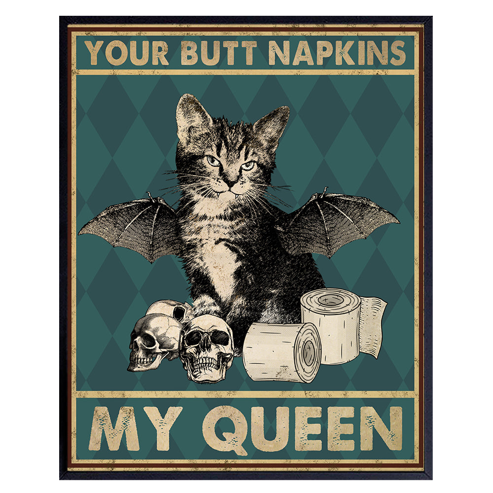 Cute Funny Cat Bathroom Wall Art - Modern Bathroom Decor for Women, Men, Kids - Restroom Poster - Butt Napkins Sign - Powder room Wall Decor - Cat Wall Art - Kitty, Kitten Bath Accessories