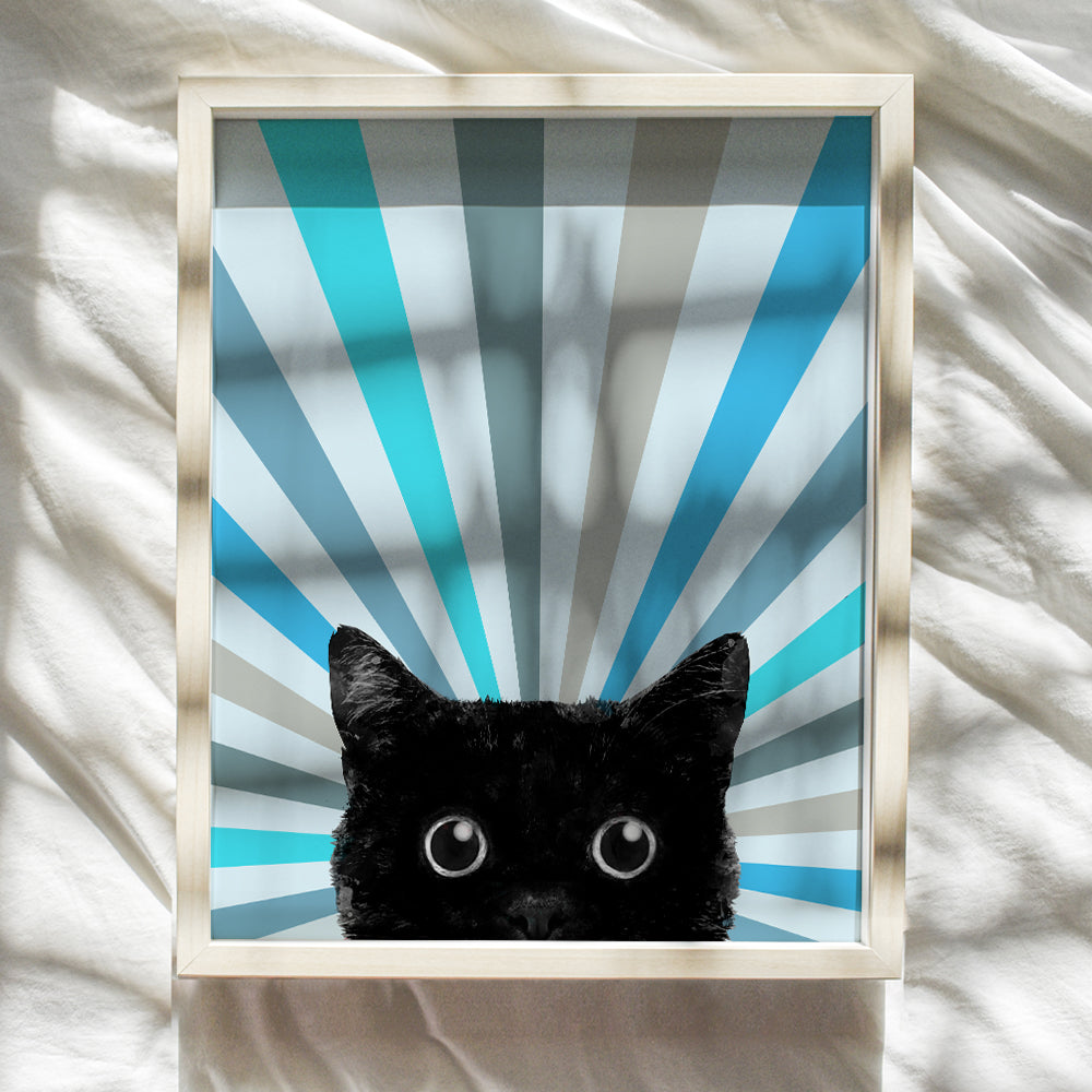 Cat Wall Decor Boho Wall Art - Blue Vintage Retro Boho-chic Minimalist Mid Century Room Decor - Farmhouse Boho Wall Decor - Chic Cute Black cat Poster, Cat Stuff, Cat Mom, Cat Themed Gifts for Women