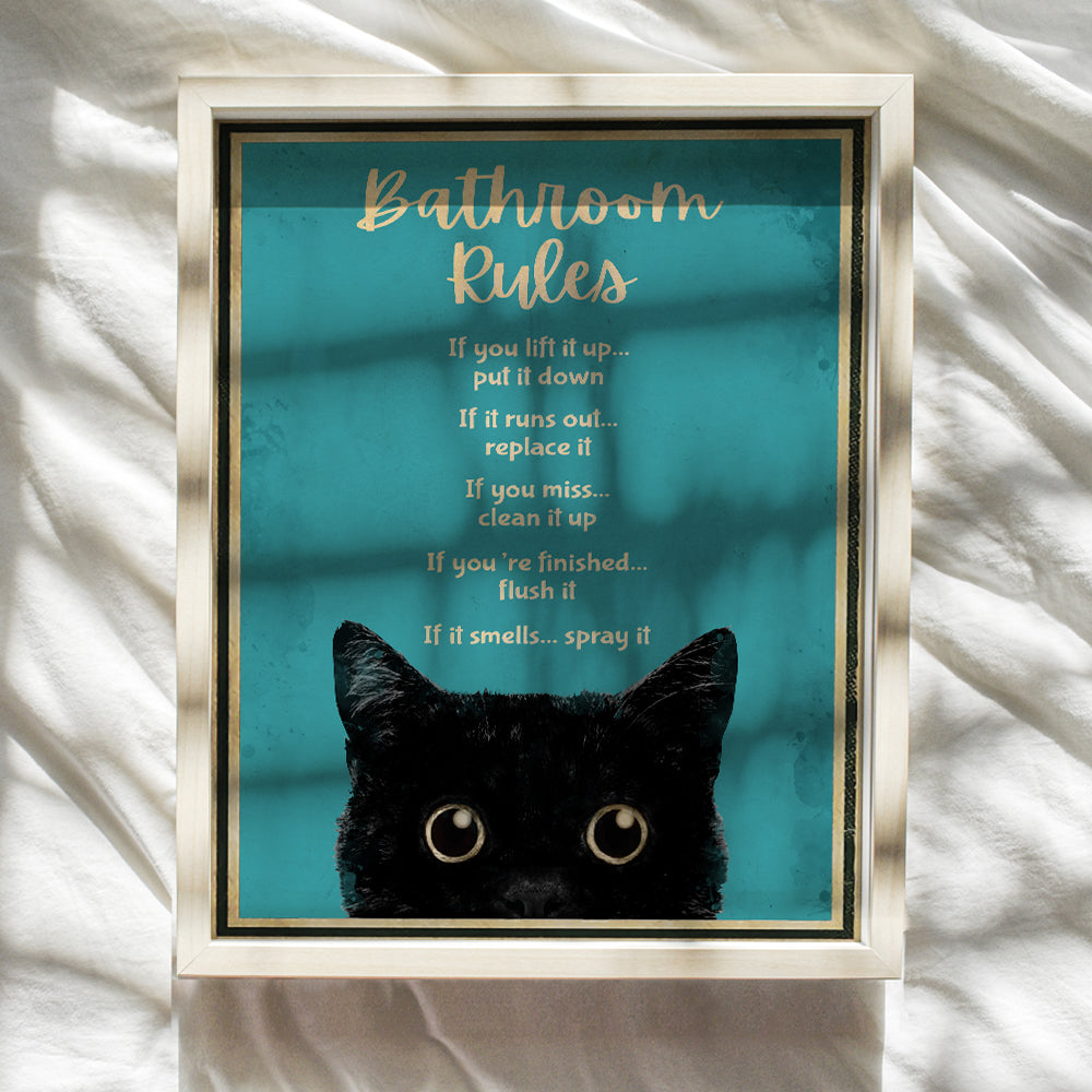 Funny Cat Restroom Sign - Guest Bathroom Decor for Women - Small Bathroom Wall Art - Blue Bathroom Decorations - Unique Powder room Decor - Cute Lover Gifts - Cat Bathroom Wall Decor