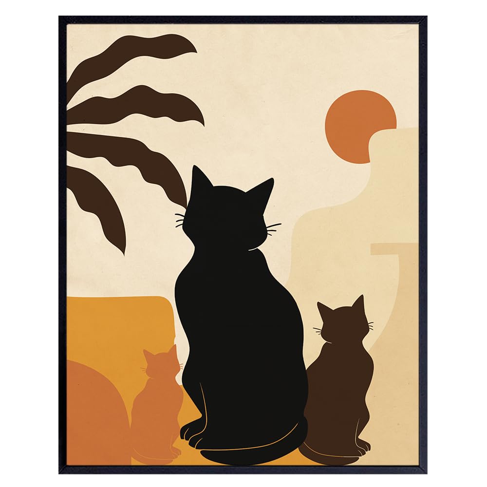Mid-century modern Cat Wall Art - Abstract art Minimalist Wall Decor - Aesthetic Room Decor - Botanical Modern art Wall Decor - Boho-chic Cat Wall Decor Living room Women Men - Cat Stuff Gifts