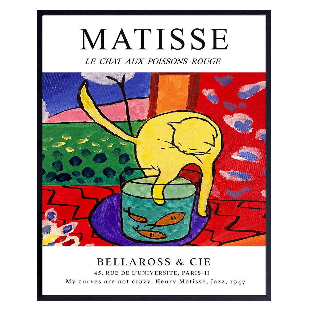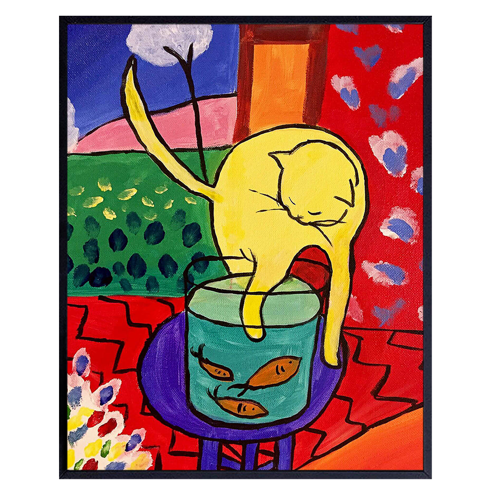 Minimalist Cat Wall Art - Mid Century Modern Decor - Abstract Boho Gallery Wall Art - Aesthetic Room Decor - Cat Themed Gifts for Cat Lovers - Matisse Style Home Decor - Bohemian Wall Decor