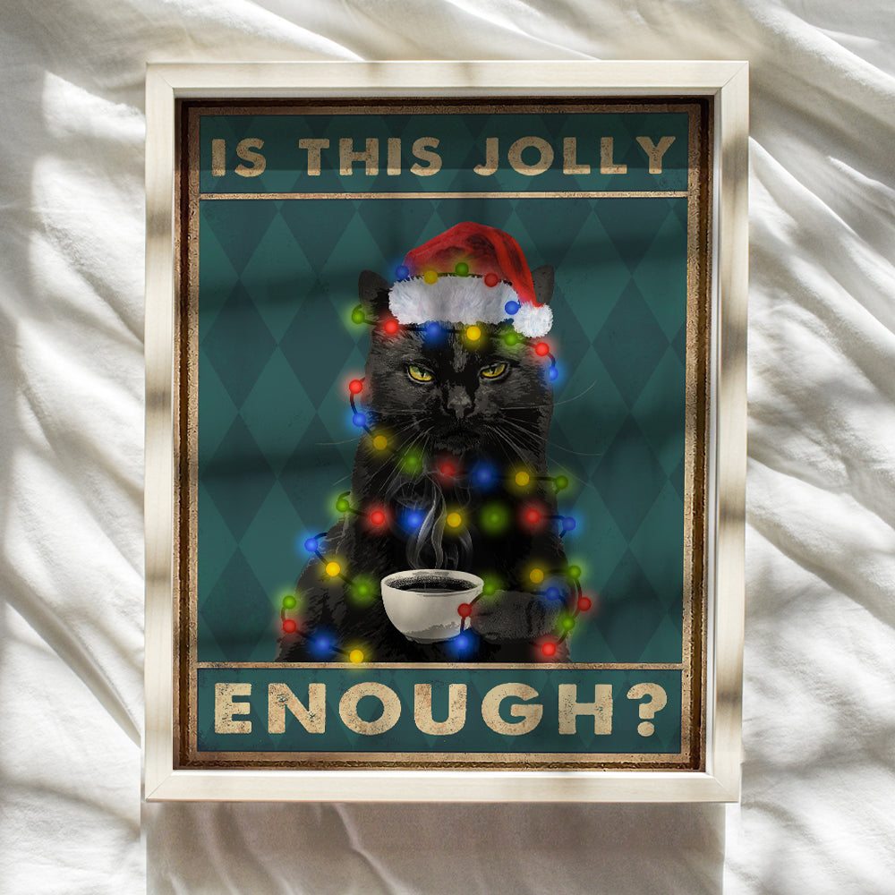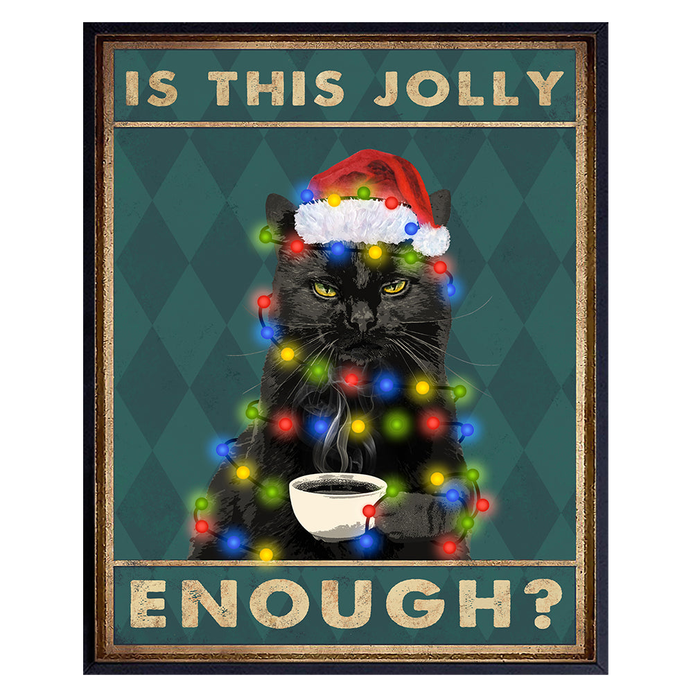 Black cat Christmas Wall Art - Cat Decorations - Santa Claus, Xmas Lights - Cat Wall Decor for Holiday - funny Cat Christmas Decorations - Is This Jolly Enough Xmas Decor - Cat Themed