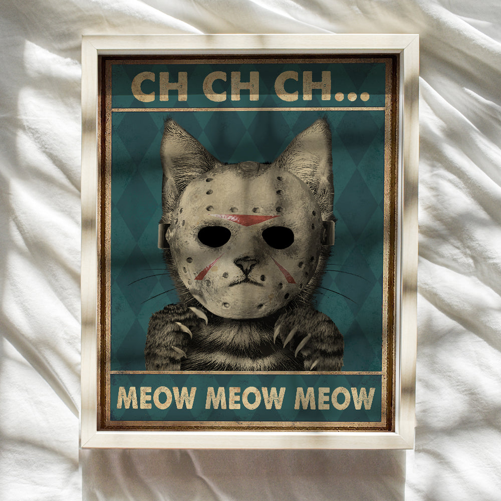Cute Cat Horror Movie Poster - Funny Cat Halloween Decorations - Cat Wall Art - Scary Horror Movie - Cat Gifts for Men - Cat Decor - Halloween Wall Decor - Cat Poster - Horror Decor - Cat Themed