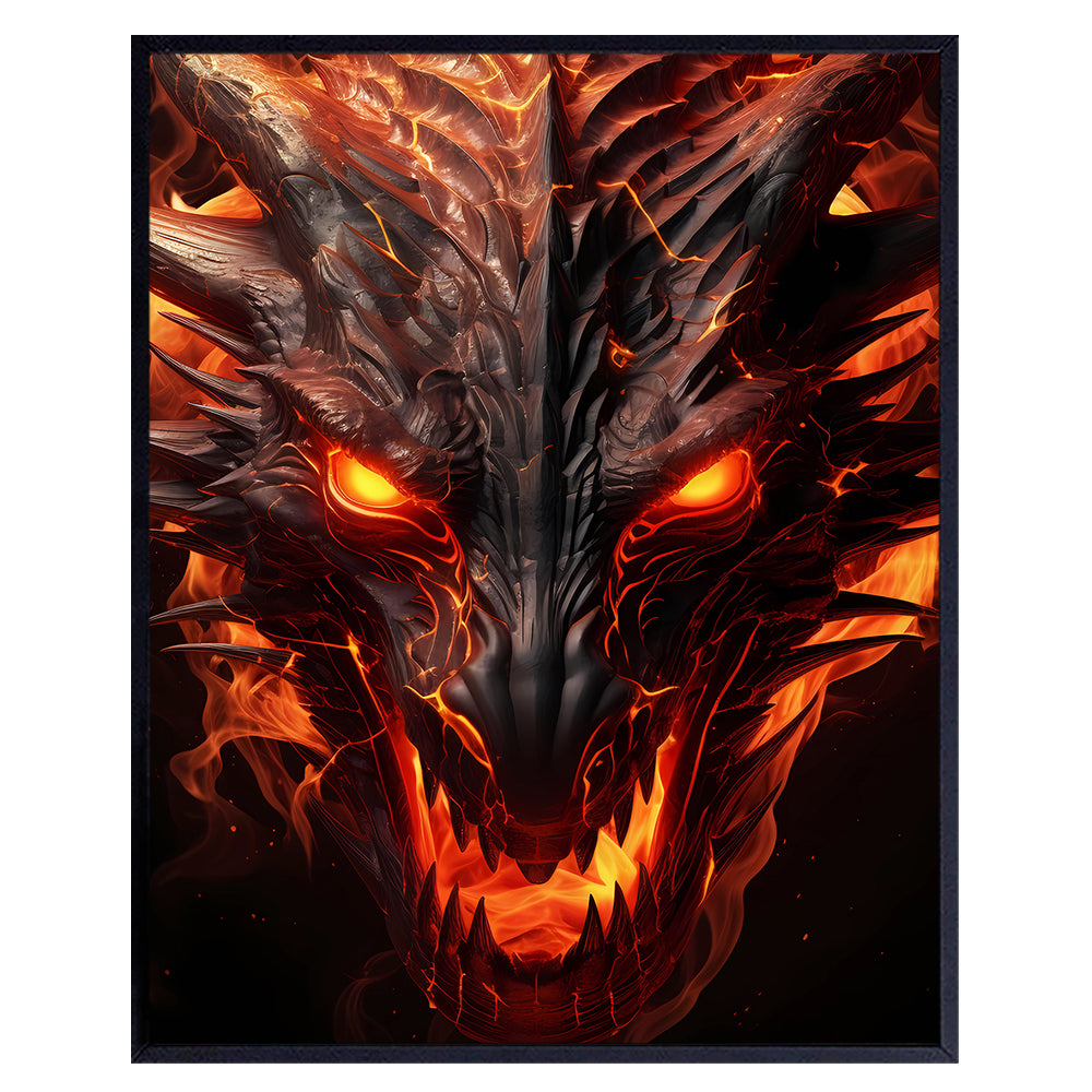 Dragon Wall Decor - Sci Fi Wall Art - Wall Decor for Men - Boys Room Decor, Man cave Decor - Video game Room Decor, Gaming Gamer Room Decor, Dorm Room Decor- Dragon Decorations - Fantasy Gamer Gifts