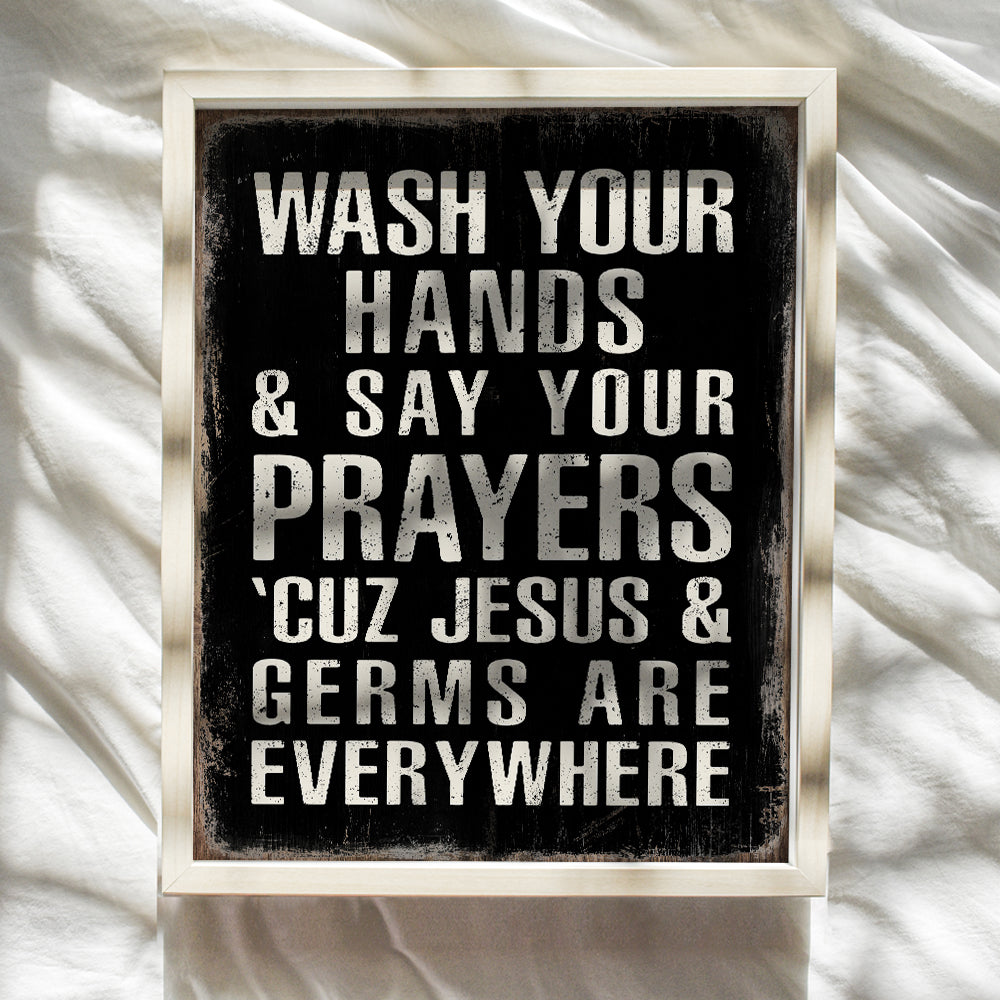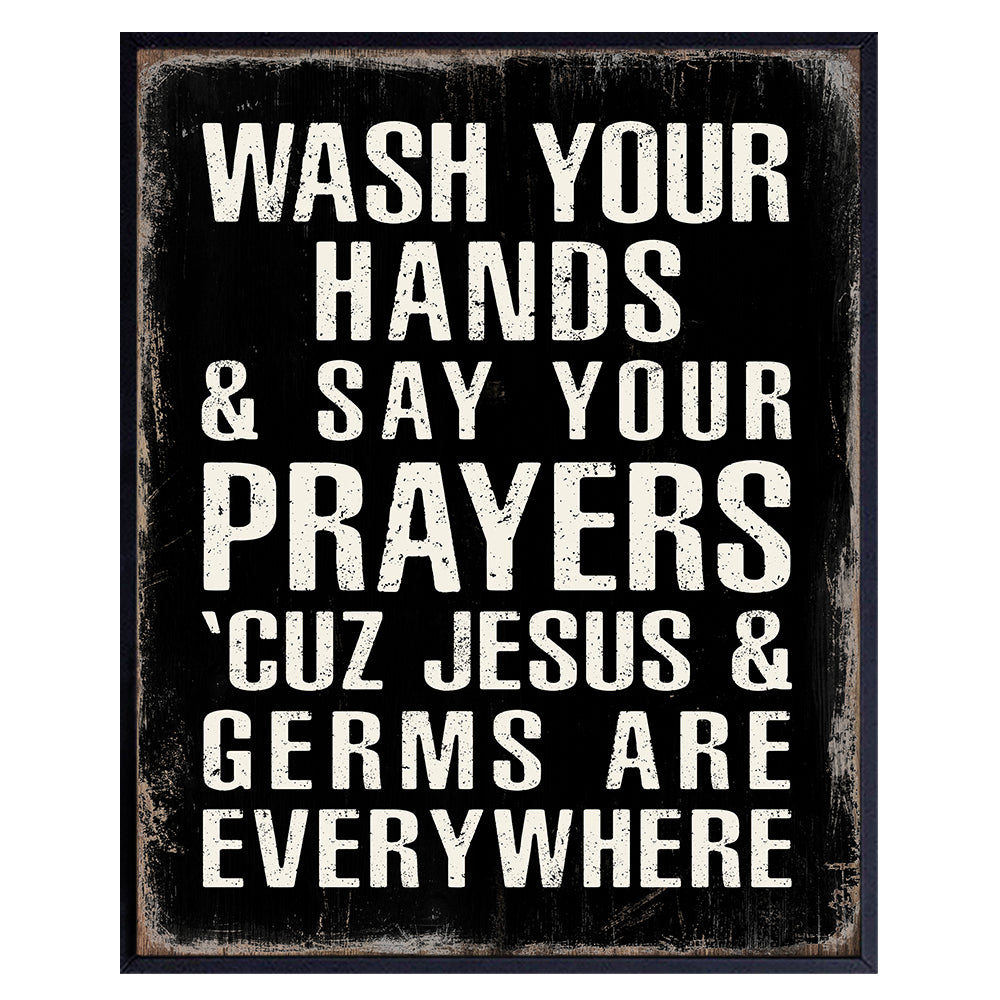 Christian Art Kids Bathroom Decor - Boys Bathroom Religious Wall Decor - White Black Bathroom Decor - Wash Your Hands Bathroom Sign - Jesus Christ funny Bathroom Decor - Rustic Restroom Accessories
