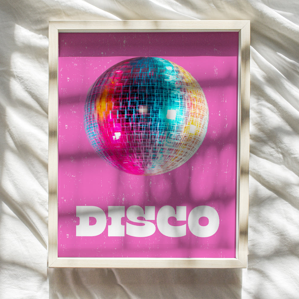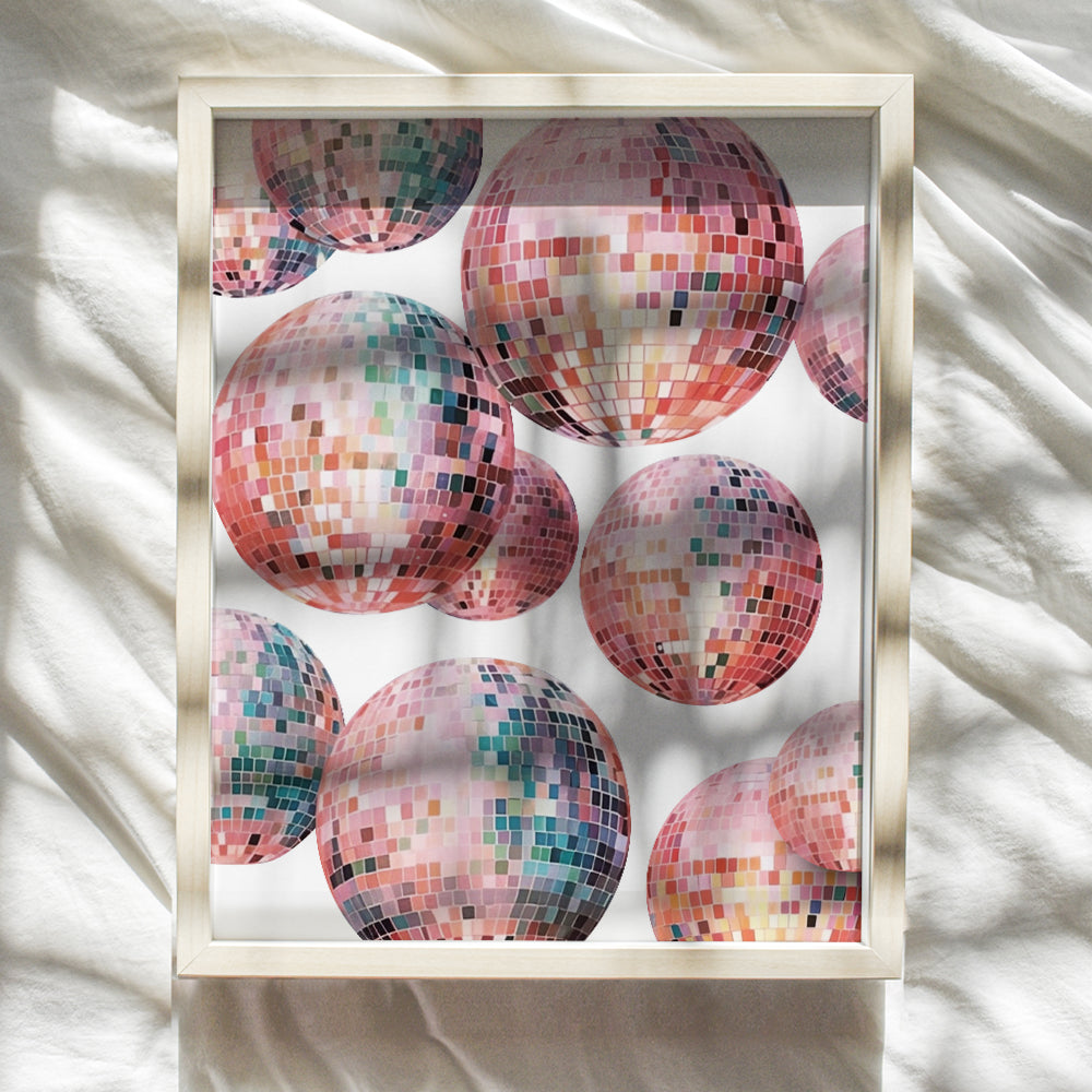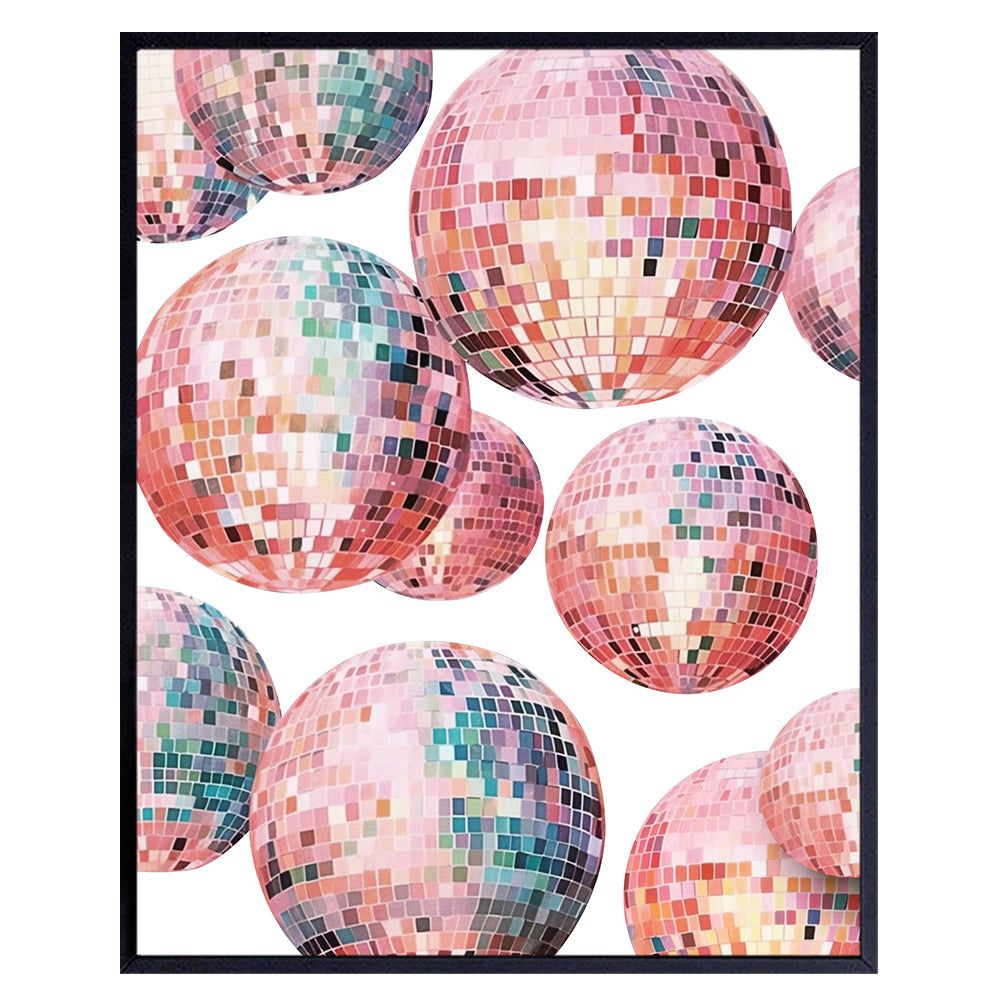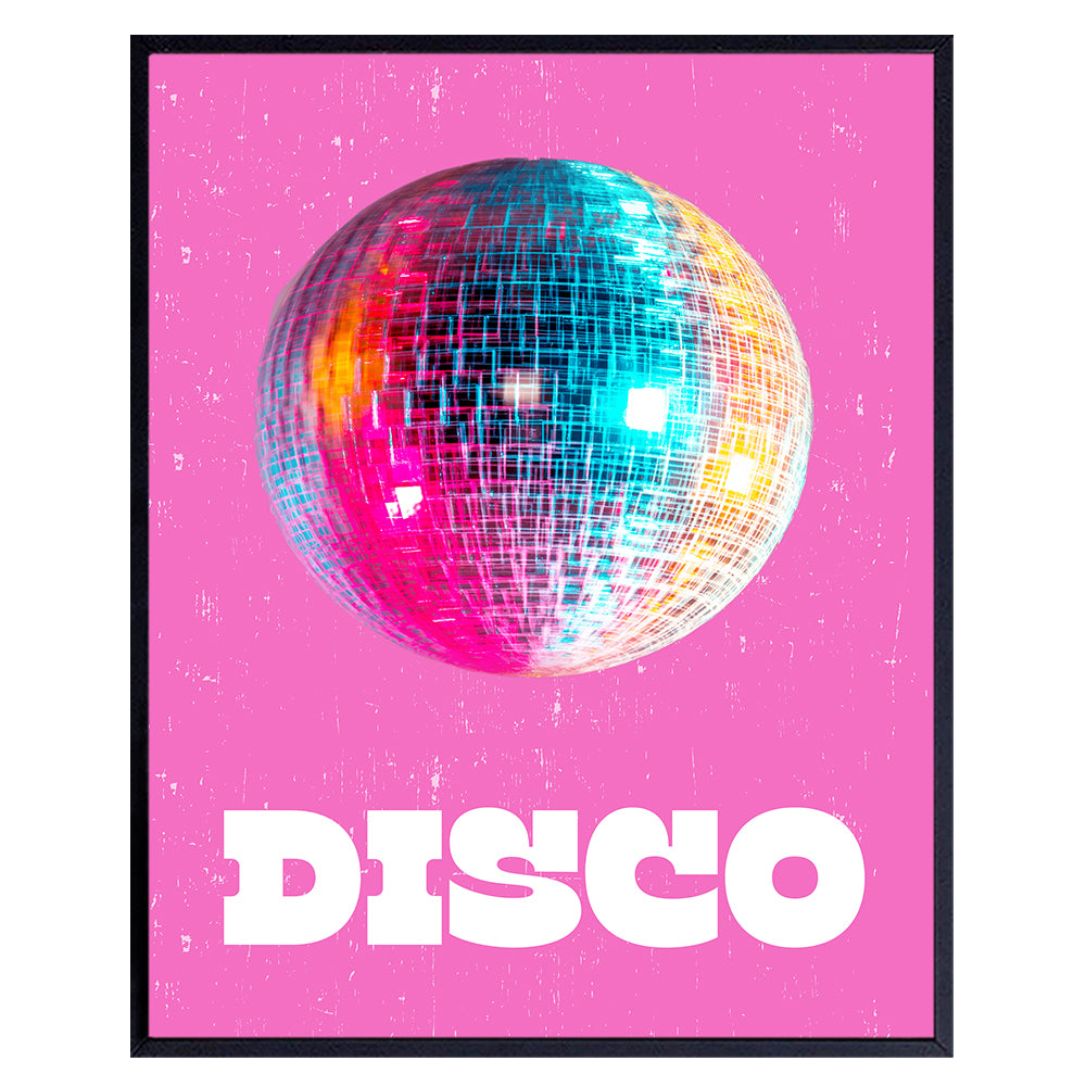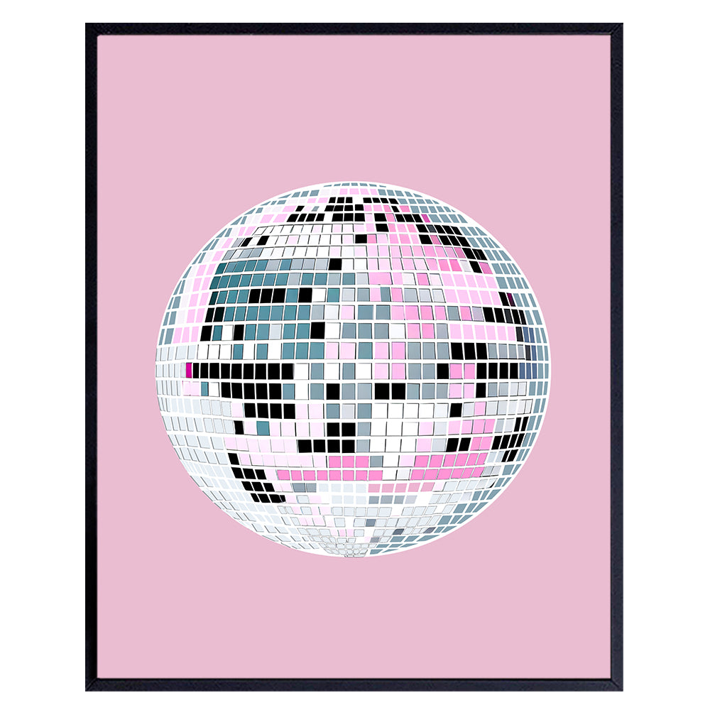 Disco Ball Decor - 70s 80s Aesthetic College Dorm Room Gallery Wall Art - Pop art Preppy Room Decor - Vintage Retro Pink Bedroom Decor for Women, Teen Girls - Funky Wall Art - Trendy Wall Decor 8x10