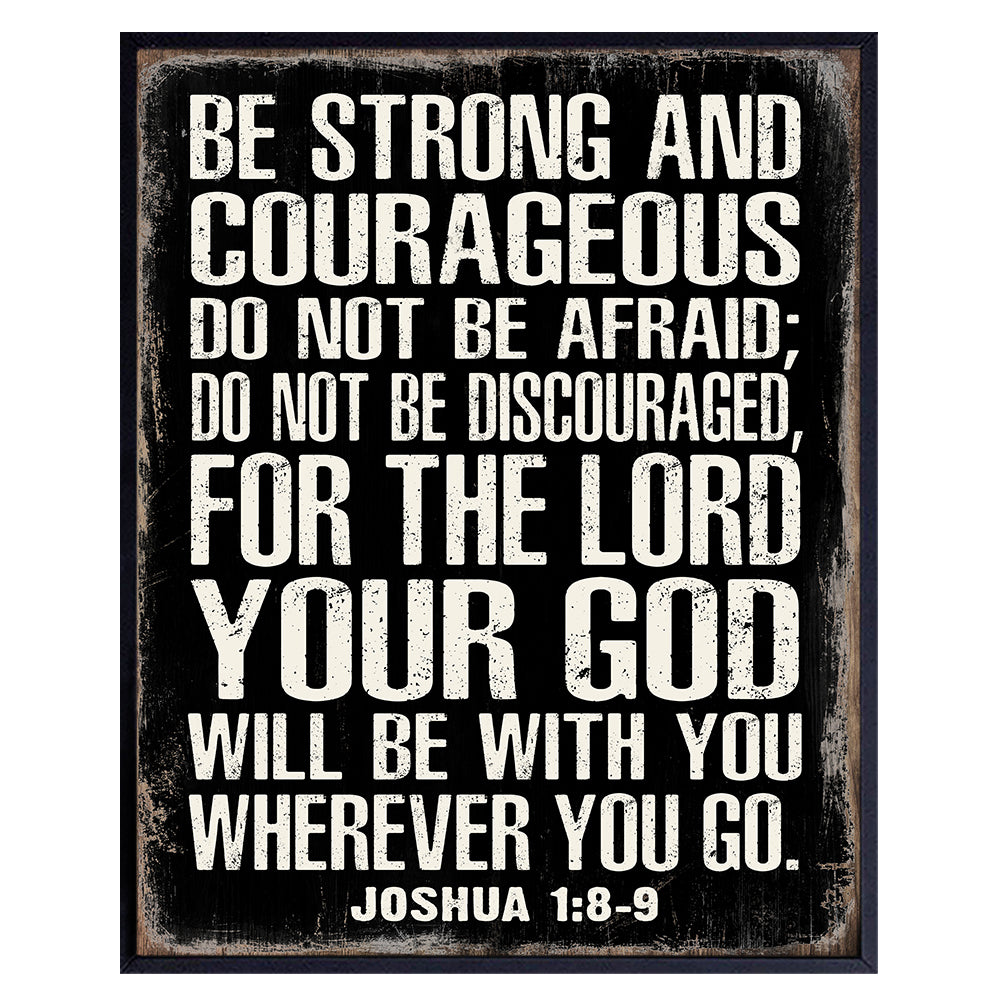 Christianity Wall Art - Inspiration Bible Verse Poster for Man Cave - Masculine Religious Decor - Motivation Scripture Wall Decor - Joshua 1:9 - Courage Gifts for Men - Be Strong and Courageous