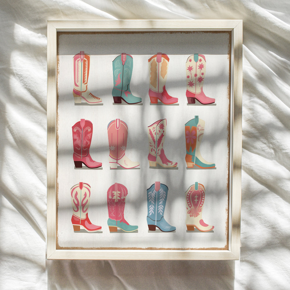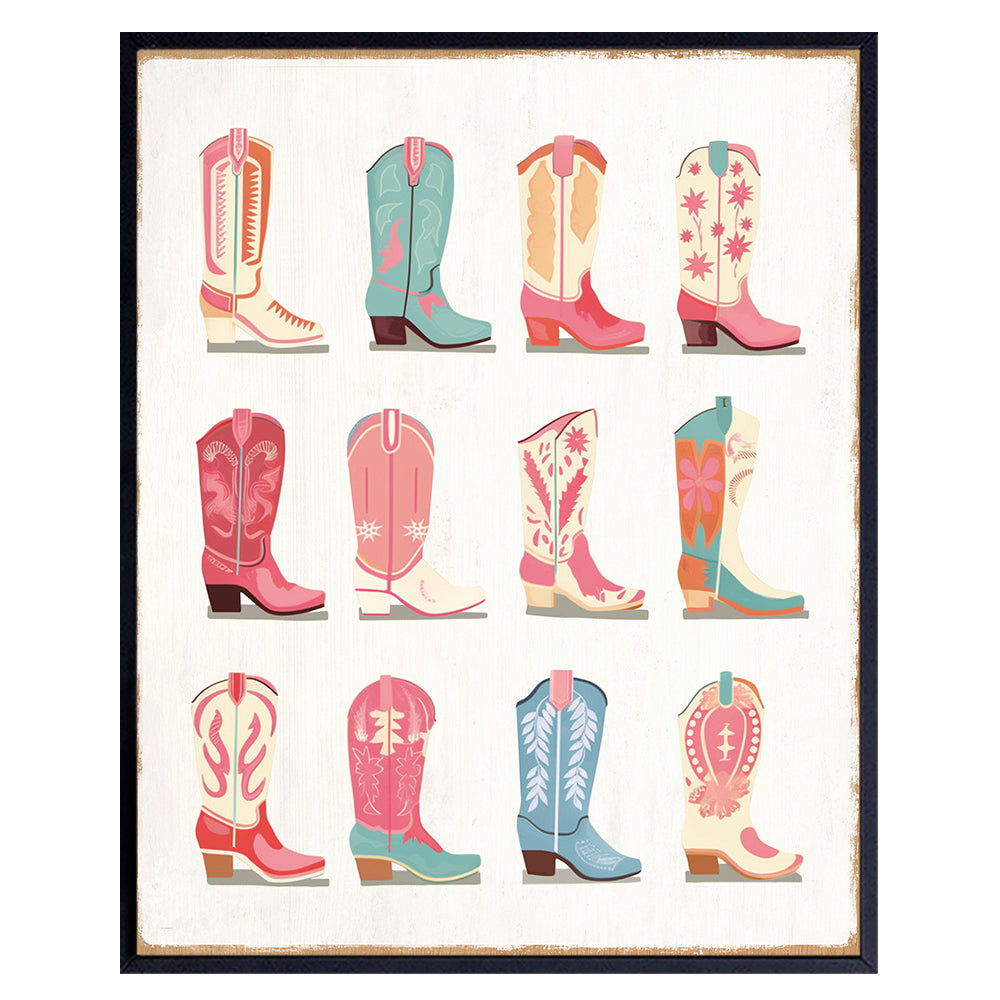 Cowgirl Boots Rustic Wall Decor for Women - Boho Wall Decor, Vintage Farmhouse Wall Art - Pink Living room Decor, Chic Western Wall Decor - Barn Wall Decor, Country Decor - Home Decor Aesthetic