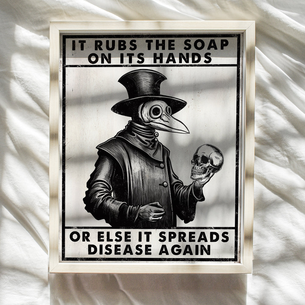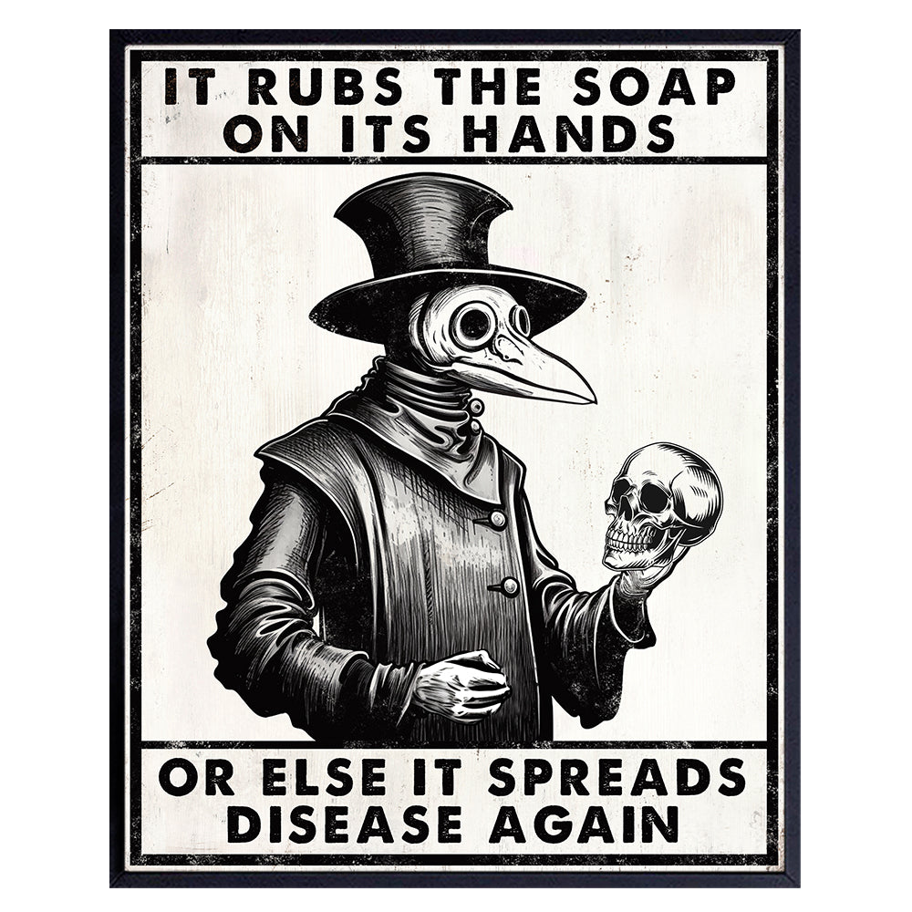 Gothic Funny Bathroom Decor - funny Sayings Bath Wall Art - Black Bathroom Accessories - Wash your Hands Sign - Plague Doctor Decor - Goth Medieval Powder room Decor - Skull Wall Decor - Restroom Sign