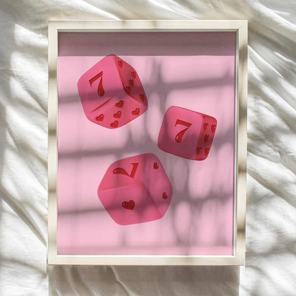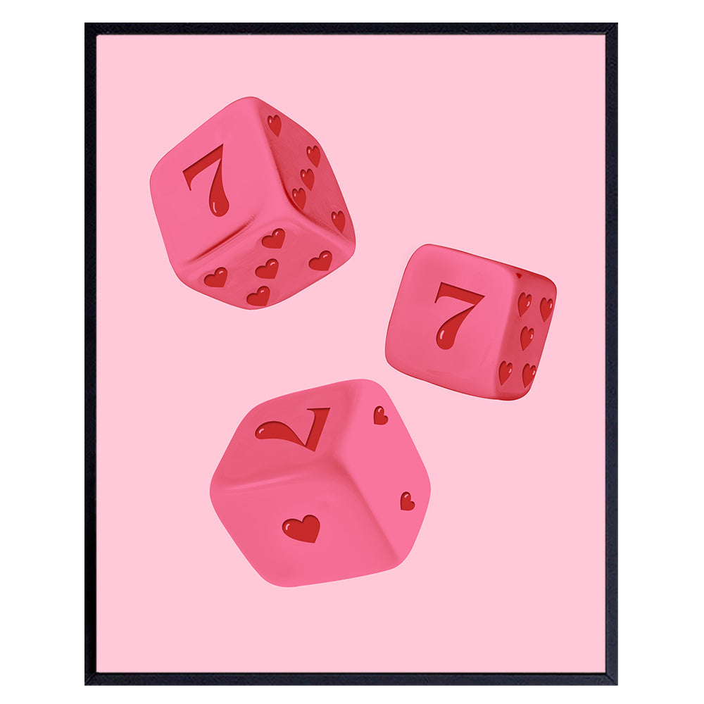 Lucky 7 Preppy Room Decor - Pink Game Room Wall Decor Aesthetic - Funky Casino Party Decorations - Retro Wall Decor for Women - Cute Trendy Stuff - Chic Home Decor - 70s Inspirational Home Decor