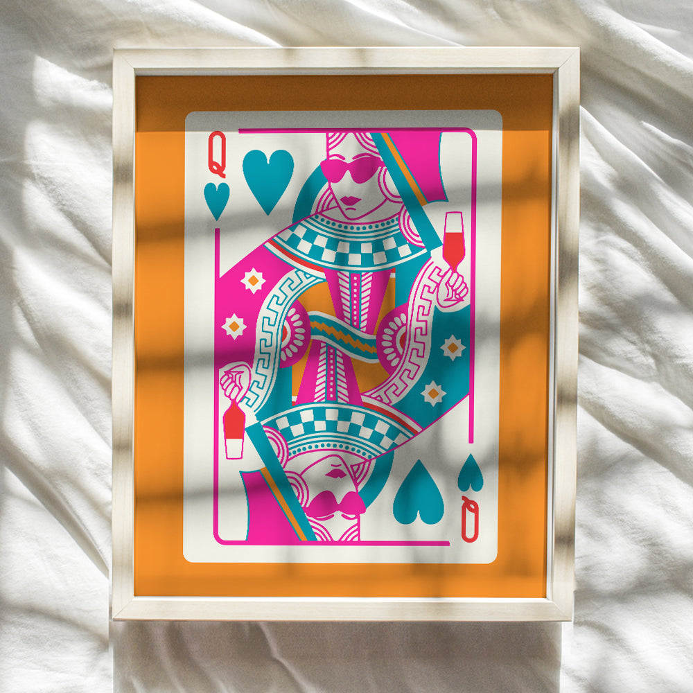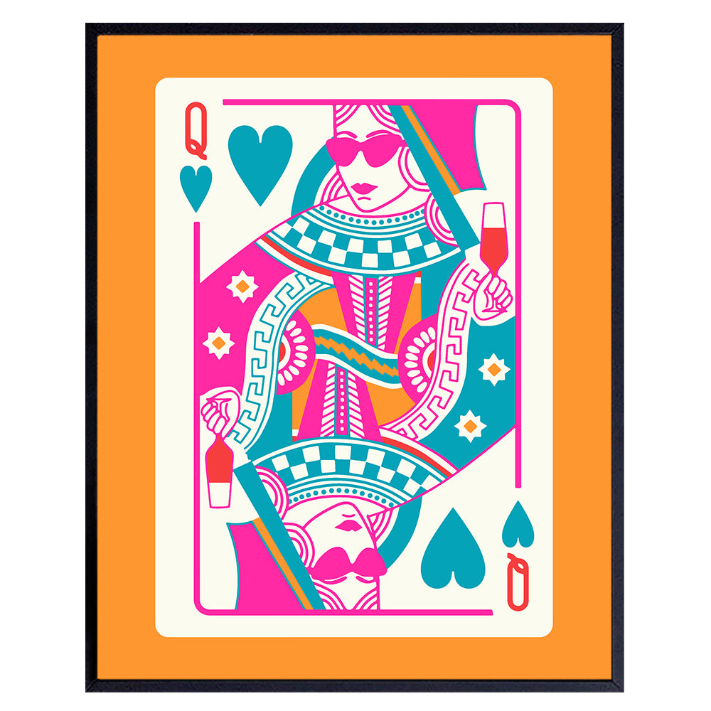 Queen of Hearts Preppy Room Decor - Queen O Hearts Cute Trendy Aesthetic Wall Decor for Women - Funky Blue Pink Orange Bar Decor - 70’s Retro Chic Home Decor - Maximalist Bedroom Living room Wall Art