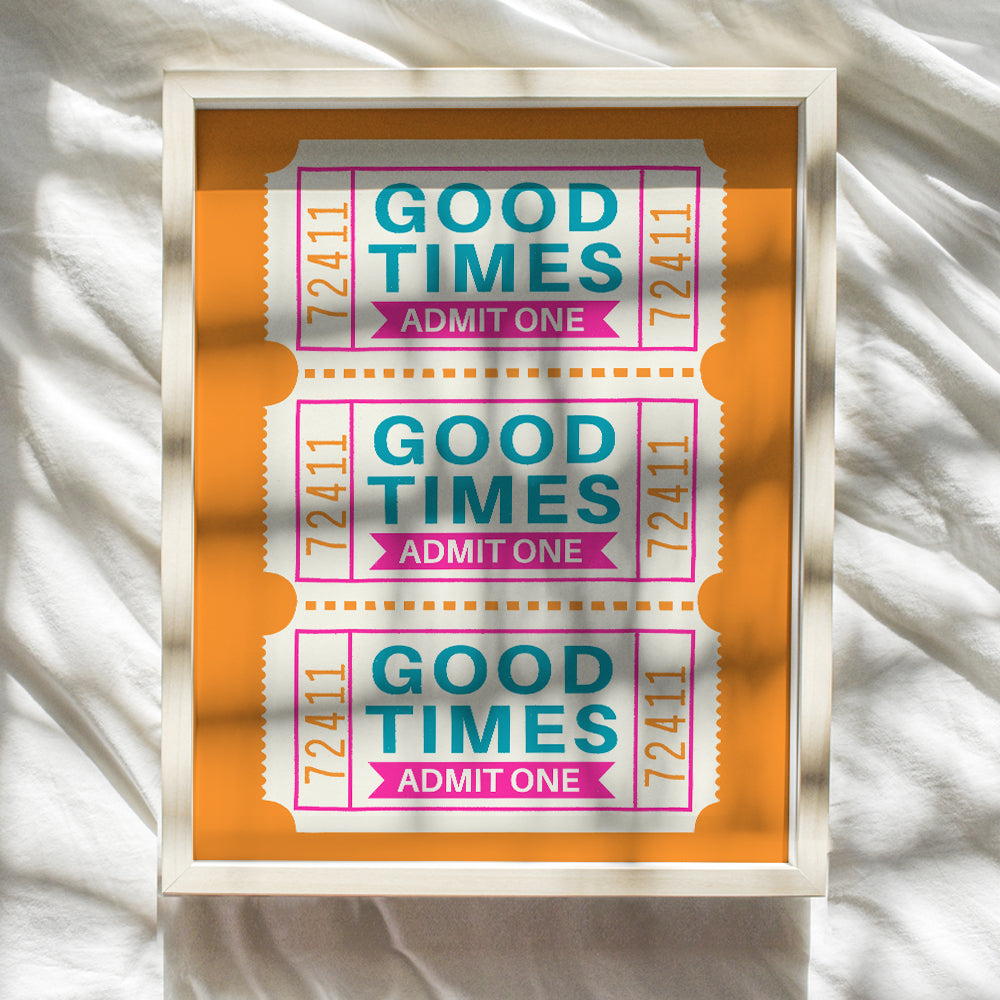 Good Times Trendy Wall Decor - 70s Pop art Retro style Cute Preppy Room Decor - positive Indie Minimalist Wall Art - Funky Wall Art, Eclectic Wall Decor for Women - Chic Home Decor Living room 8x10