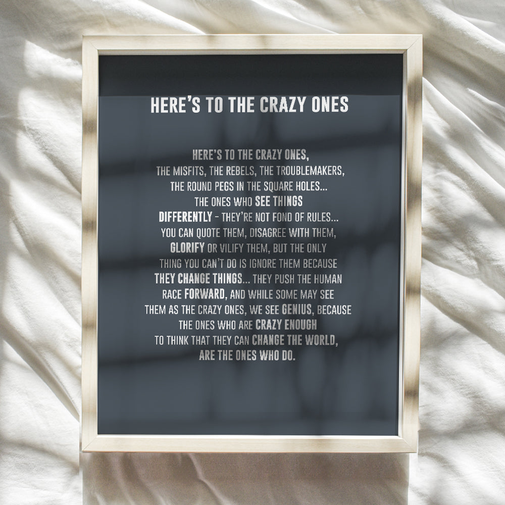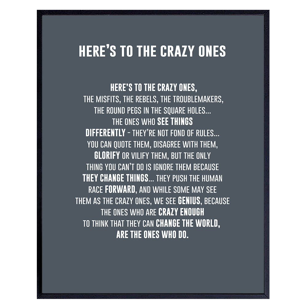 LARGE 11X14 - Here's to the Crazy Ones- Motivational Wall Art Poster - Inspirational Quotes - Inspiring Sayings for Wall Decor - Home Office Decor- Encouraging Encouragement Entrepreneur Gifts for Men