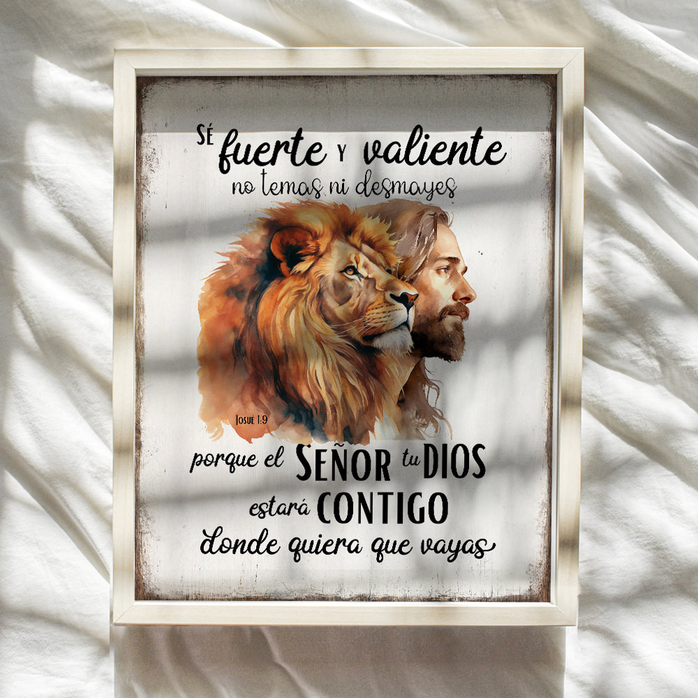 Bible Verse Christian Wall Decor - Lion Scripture Decor - Motivational, Sayings, Inspirational Quotes - Religious Art - Christian Wall Art for Men, Boys Bedroom, Teen Room - Joshua 1 9 God Decor