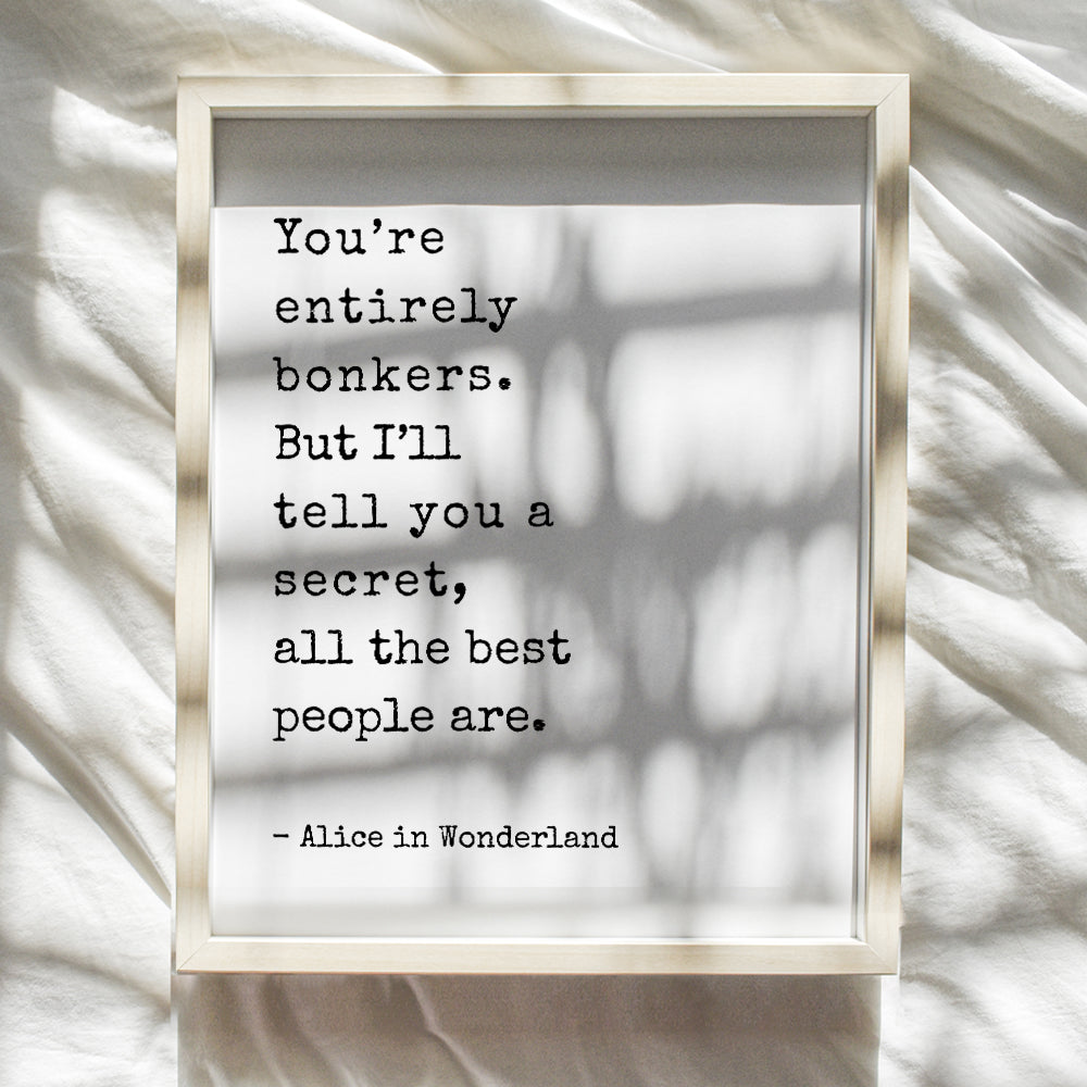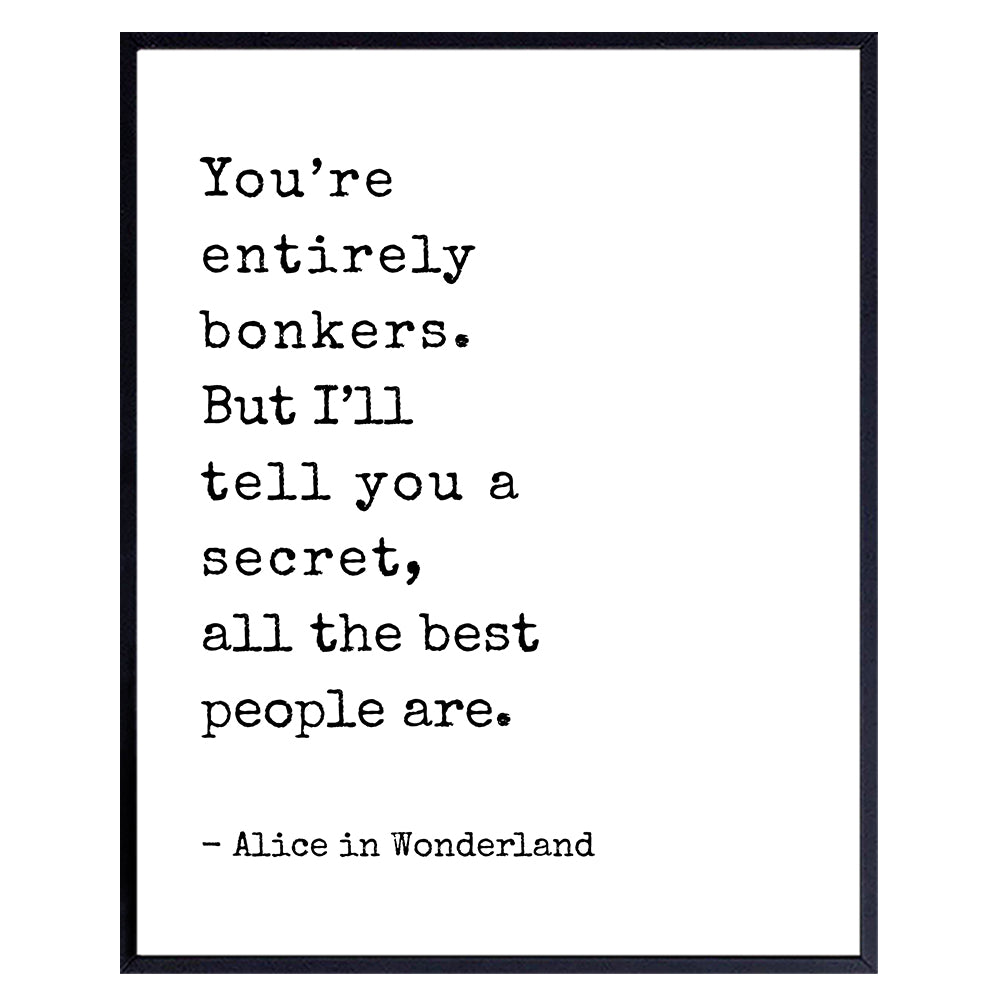 Alice in Wonderland Quote Wall Art - Typography Dictionary Print for Bedroom, Office, Girls Room - Cheshire Cat, Mad Hatter Decor - Lewis Carroll Inspired Positive Quotes Wall Decor Poster