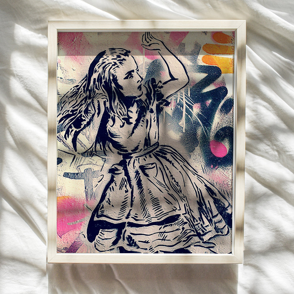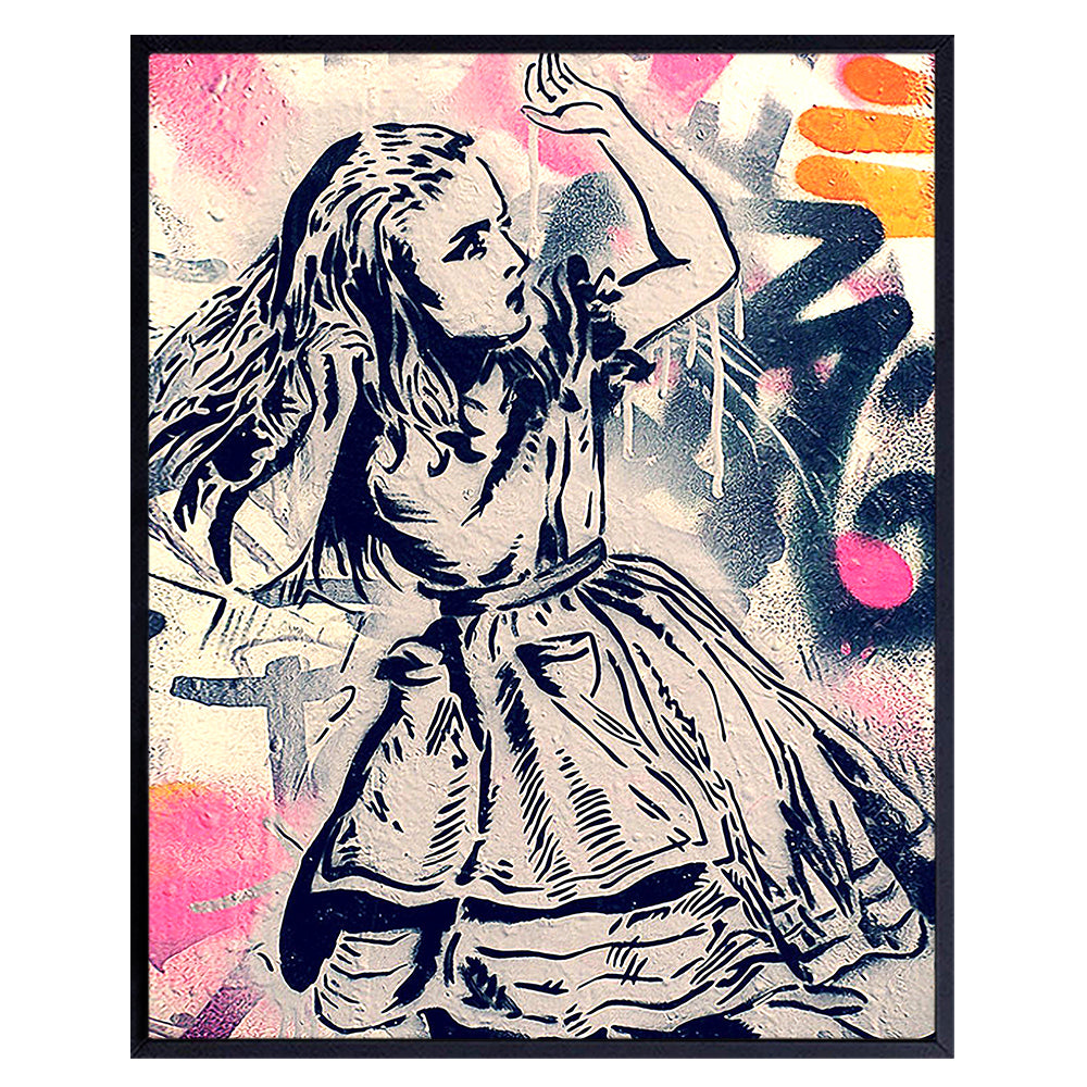 Alice Wonderland Wall Art & Decor - Graffiti Wall Art - Banksy Wall Art - Banksy Poster 8x10 - Urban Wall Art - Unique Cool Hip Street Art - Apartment Decor for Men, Women