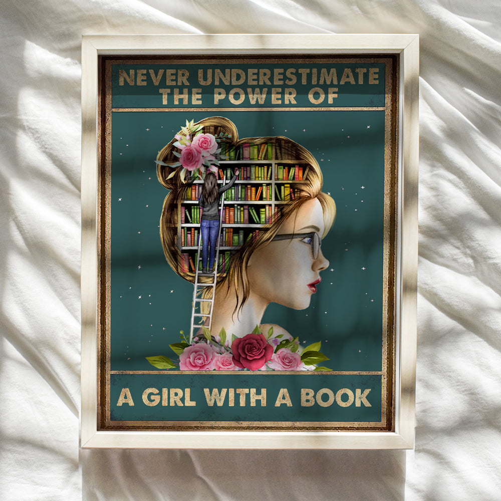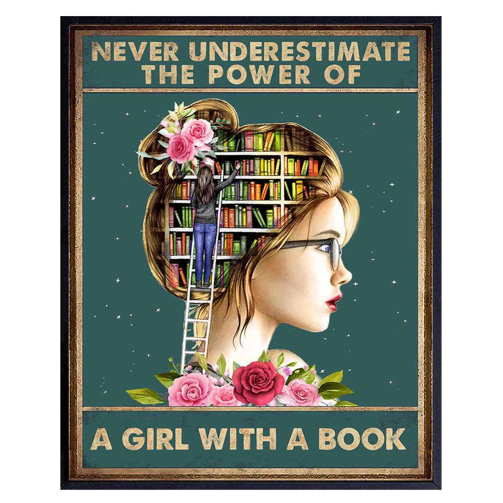 African American Classroom Decor - LARGE 11x14 - Never Underestimate a Girl With a Book Wall Art - African American Girl, Women - Inspirational Motivational Poster - Positive Quotes - Black Art