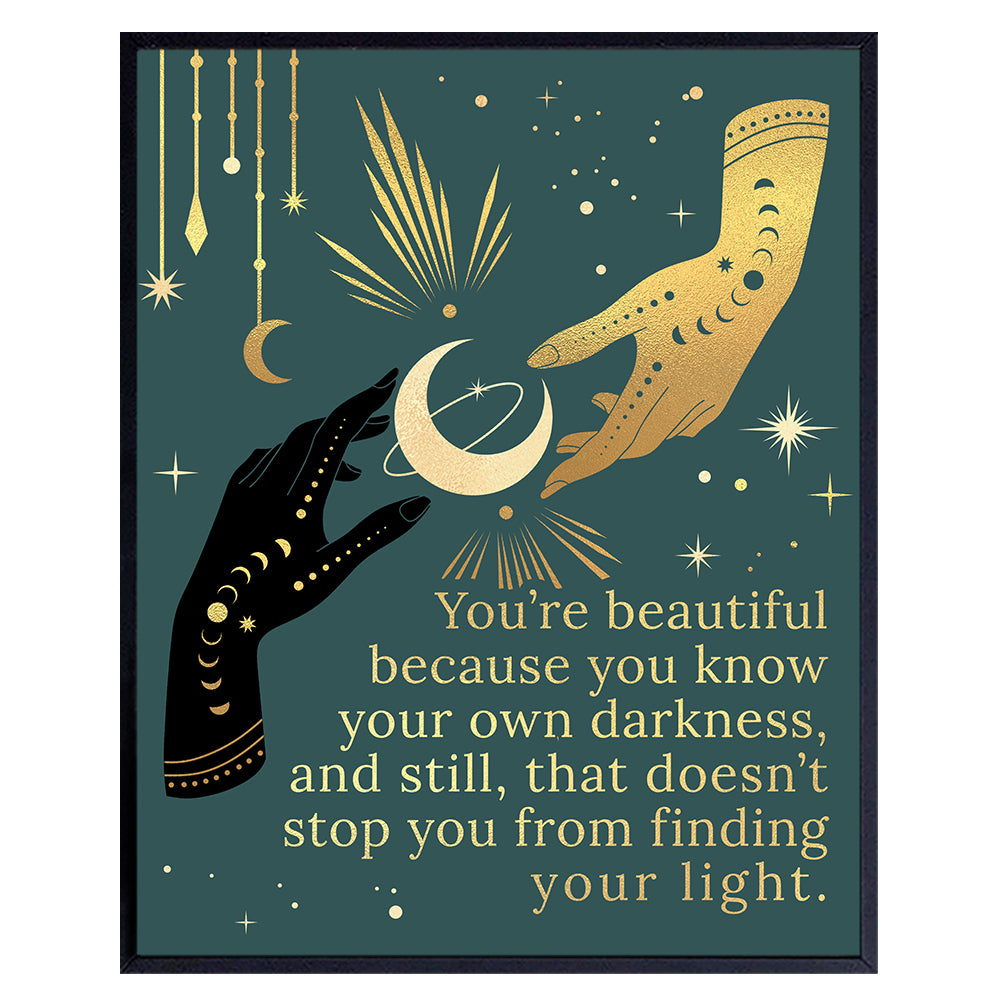 Boho Positive Wall Art & Decor - Inspirational Gifts for Women - Gothic Motivational Quotes Sayings - Bohemian Wicca Wiccan Witchcraft Paganism Supplies - Celestial Witchy Moon Room Decor