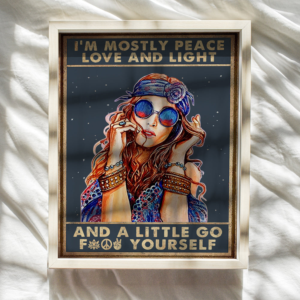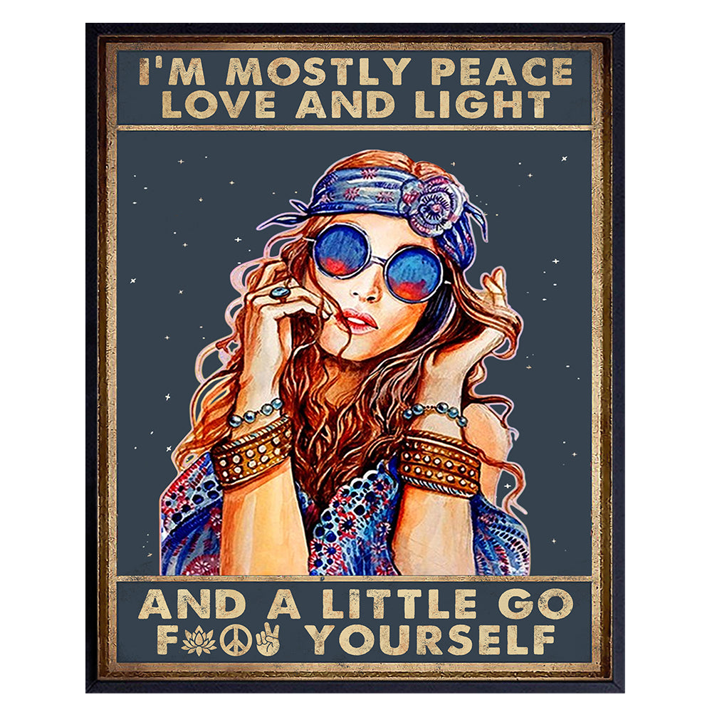 Boho Love And Light Wall Art - Inspirational Bohemian Decor - positive affirmation, Motivational Quotes - Trippy Hippie Room Decor for Women - New Age Spiritual Gifts - Funny Sayings Poster