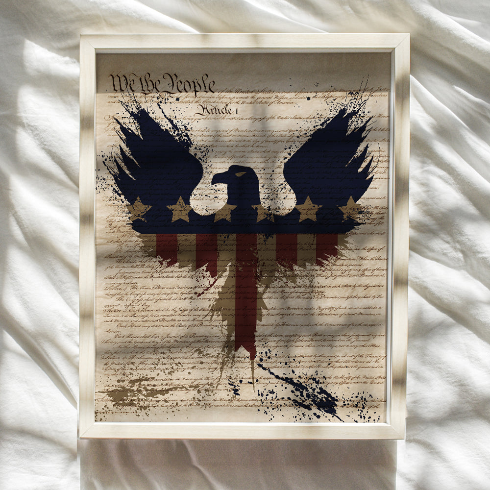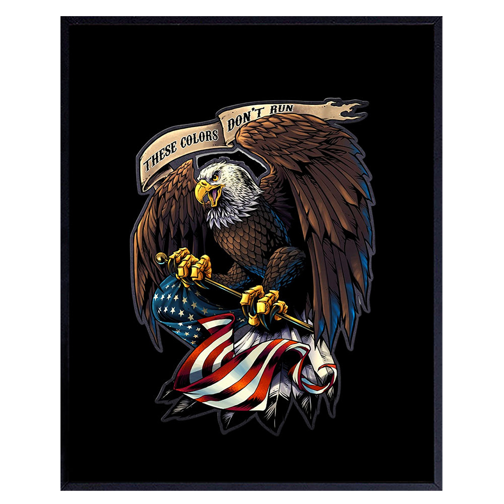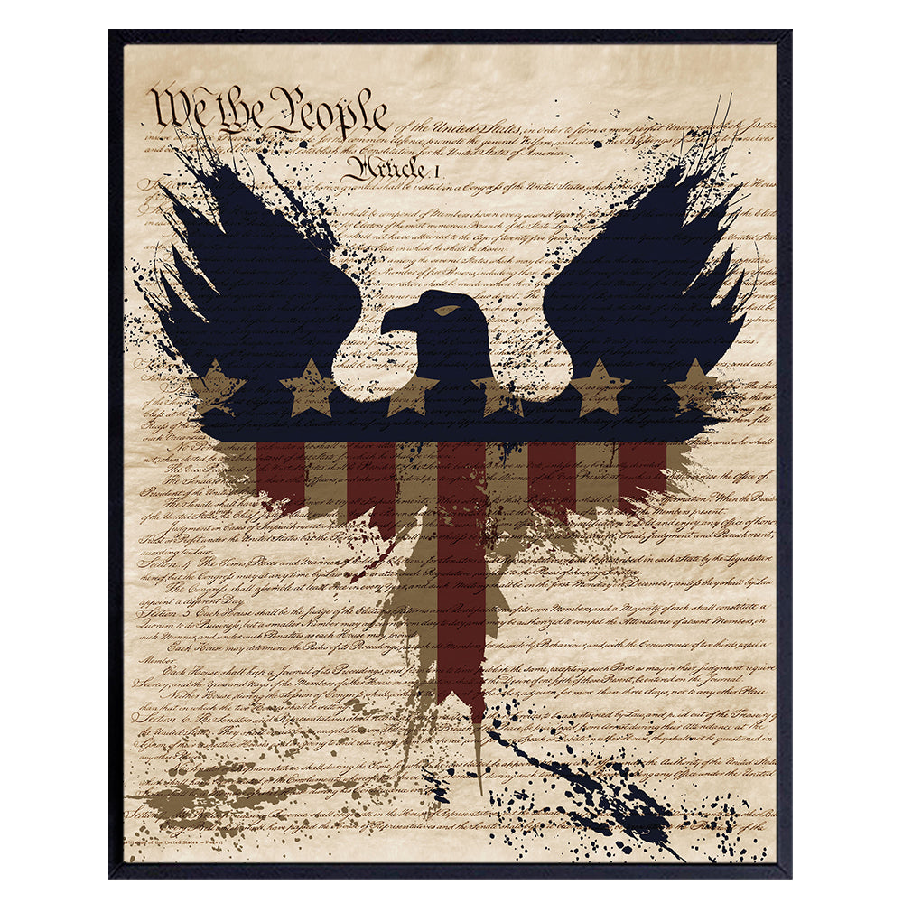 Patriotic Americana Wall Art - Vintage American Flag Poster for Home Office Decor - Military Veteran Gift - United States Armed forces, US Constitution Decorations - 4th of July Decoration