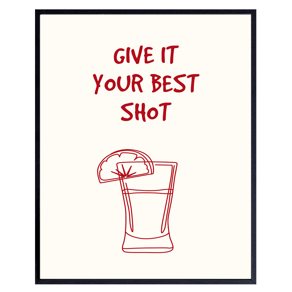 Bar Wall Art Funny Sayings - Cute Preppy Trendy Wall Decor - College Dorm Chic Home Decor - Happy Hour Sign Wall Art for Women - 80s Drink Decor - Minimalist Kitchen Decor - Yellowbird Art & Design