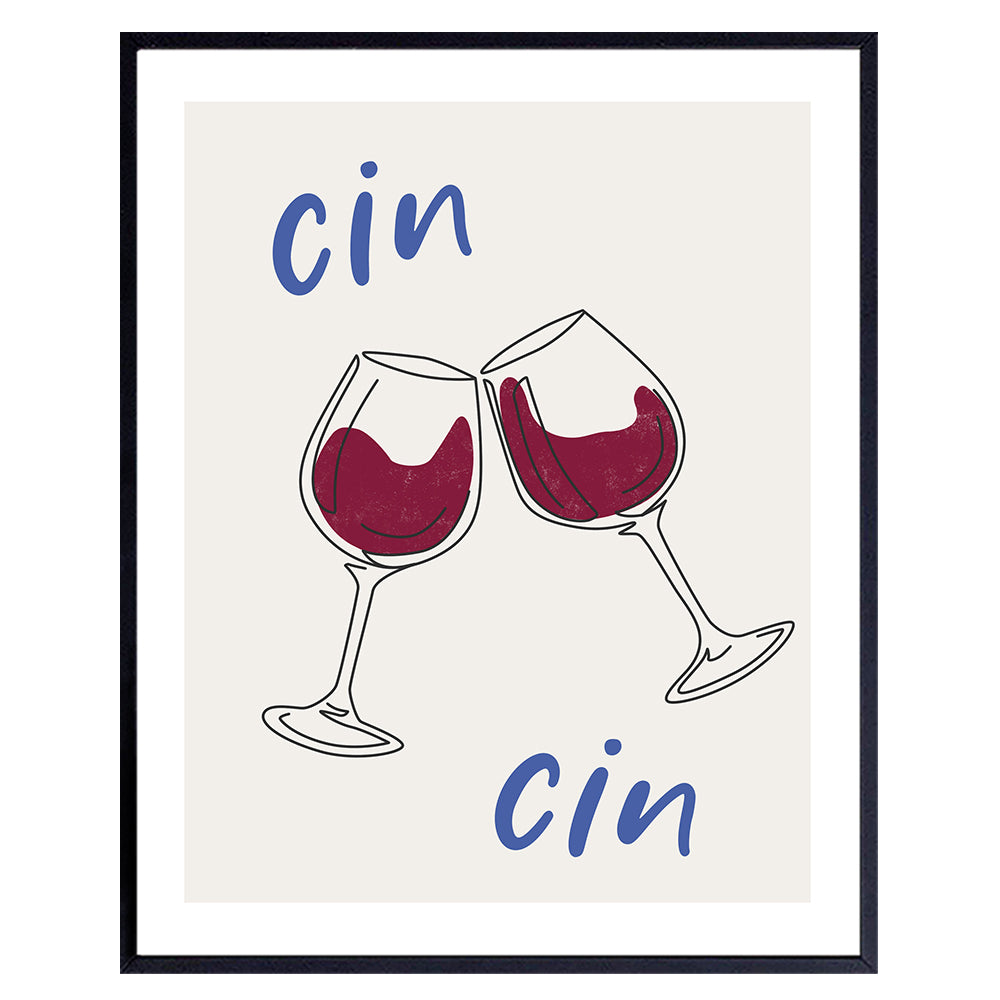 Cheers Wine Wall Art - Dining room Wall Decor, Aesthetic Kitchen Wall Decor - Alcohol Cocktail party Decorations, Home Bar Decor Poster - Preppy Trendy Room Decor, Drinks Alcohol Italian Wall Art Sign
