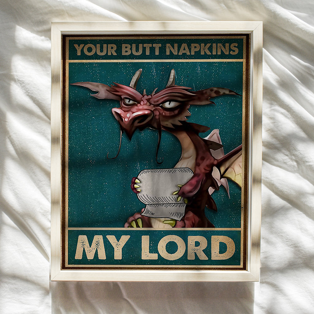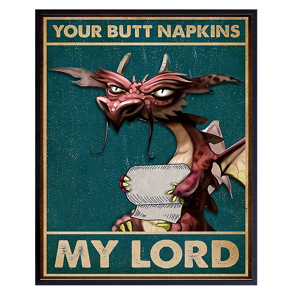 Your Butt Napkins My Lord - LARGE 11x14 - Dragon Decorations - Funny Bathroom Wall Art - Goth Gothic Bathroom Decor - Guest Bathroom - Toilet Paper Wall Art - Restroom Sign - Powder Room Decor - Bath
