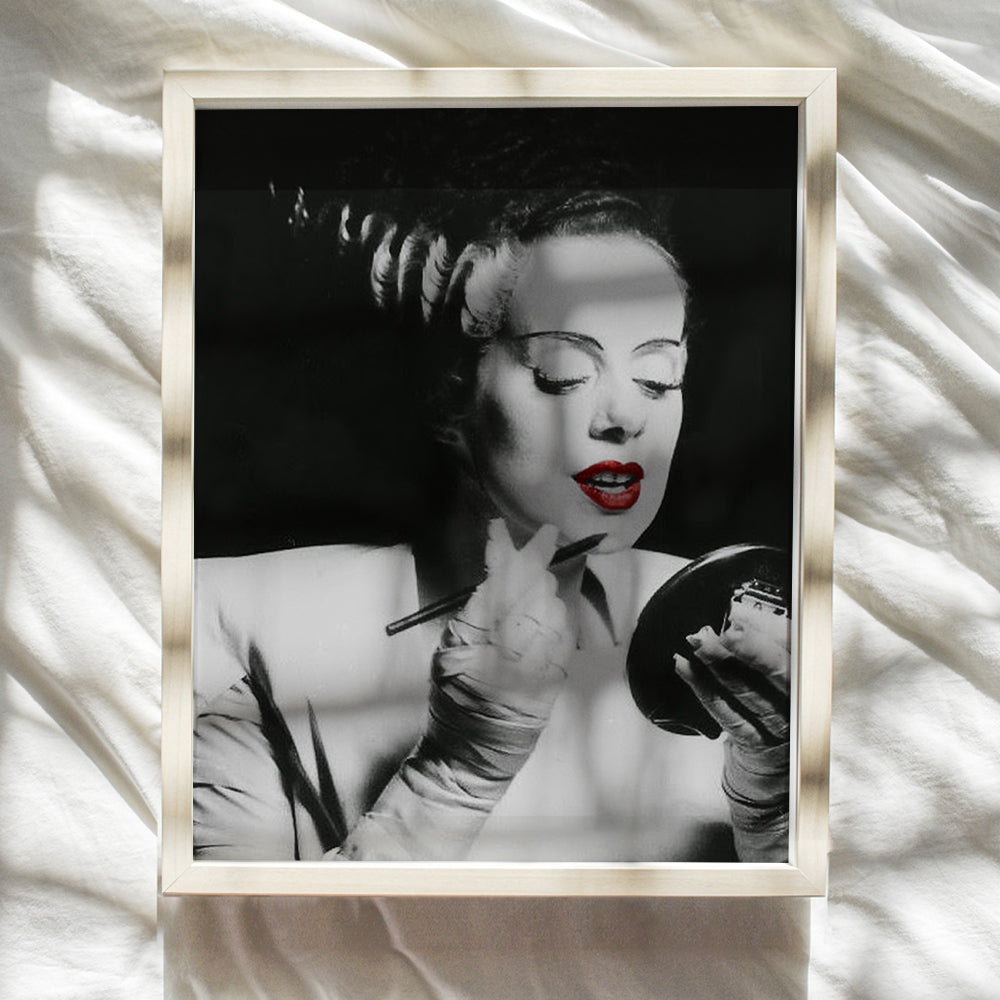 Bathroom Wall Decor For Women - Powder room Art Print - Funny Restroom Sign - Wall Decor Bathroom - Vintage Bride of Frankenstein - Home Theater Decor - Bridal Shower Gift - Retro Bath Decor