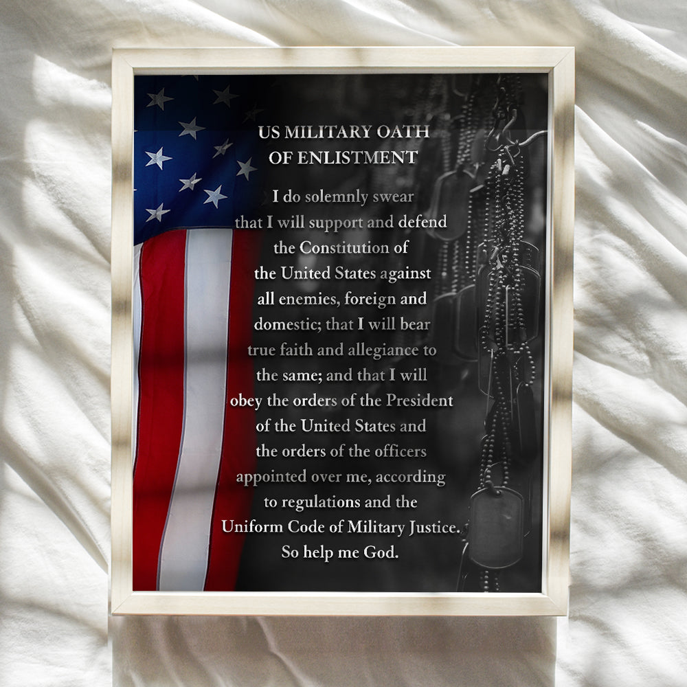 LARGE 11X14 - Oath of Enlistment Military Decor - American Flag Wall Art - Patriotic Room Decor - Veteran Wall Decor - Gift for Soldiers, Vets, Army, Navy, Air Force, Marine Corps, Men, Women - USA