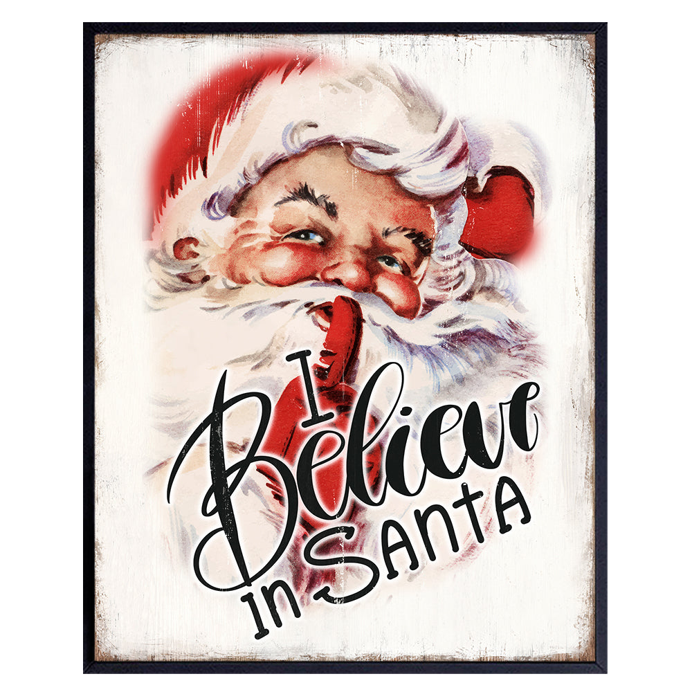 Retro Vintage Christmas Wall Art - Unique Holiday Decorations for Home - Xmas Decorations Wall Decor - Vintage Decor Santa Claus - Merry Christmas - Retro Wall Decor for Rustic Country Christmas