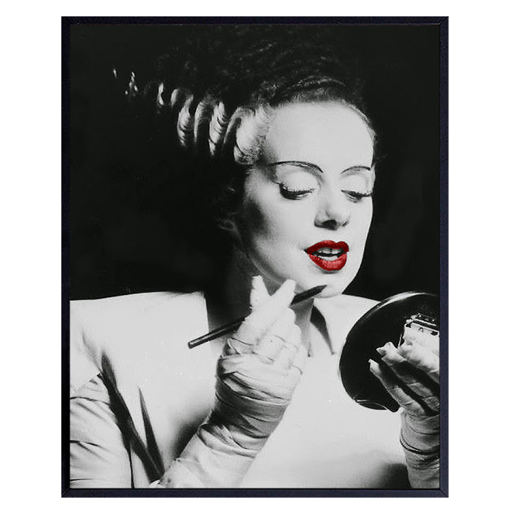 Bride Of Frankenstein Bathroom Wall Art - Vintage Hollywood Retro Restroom Decorations for Women - Funny Horror Movie Poster - Home Theater Photo - Humorous Gift - Small Bathroom Decor