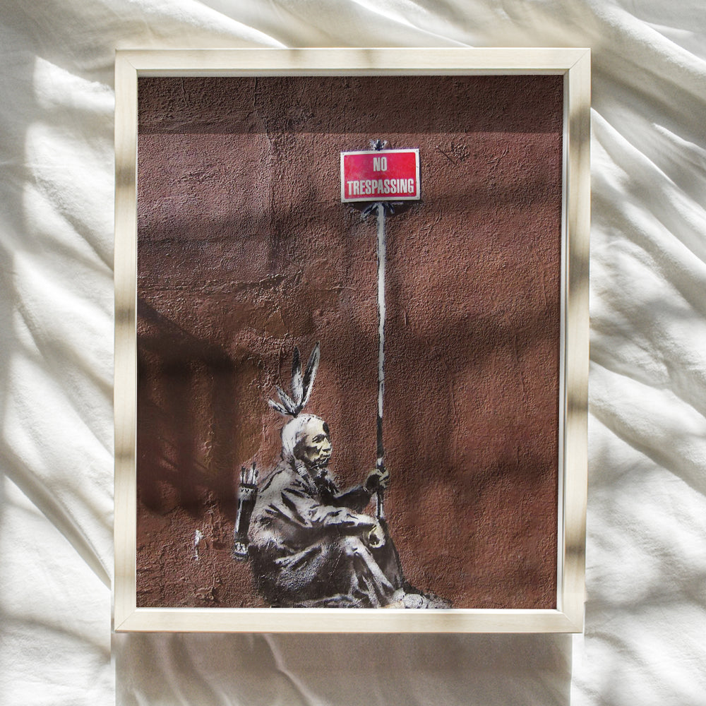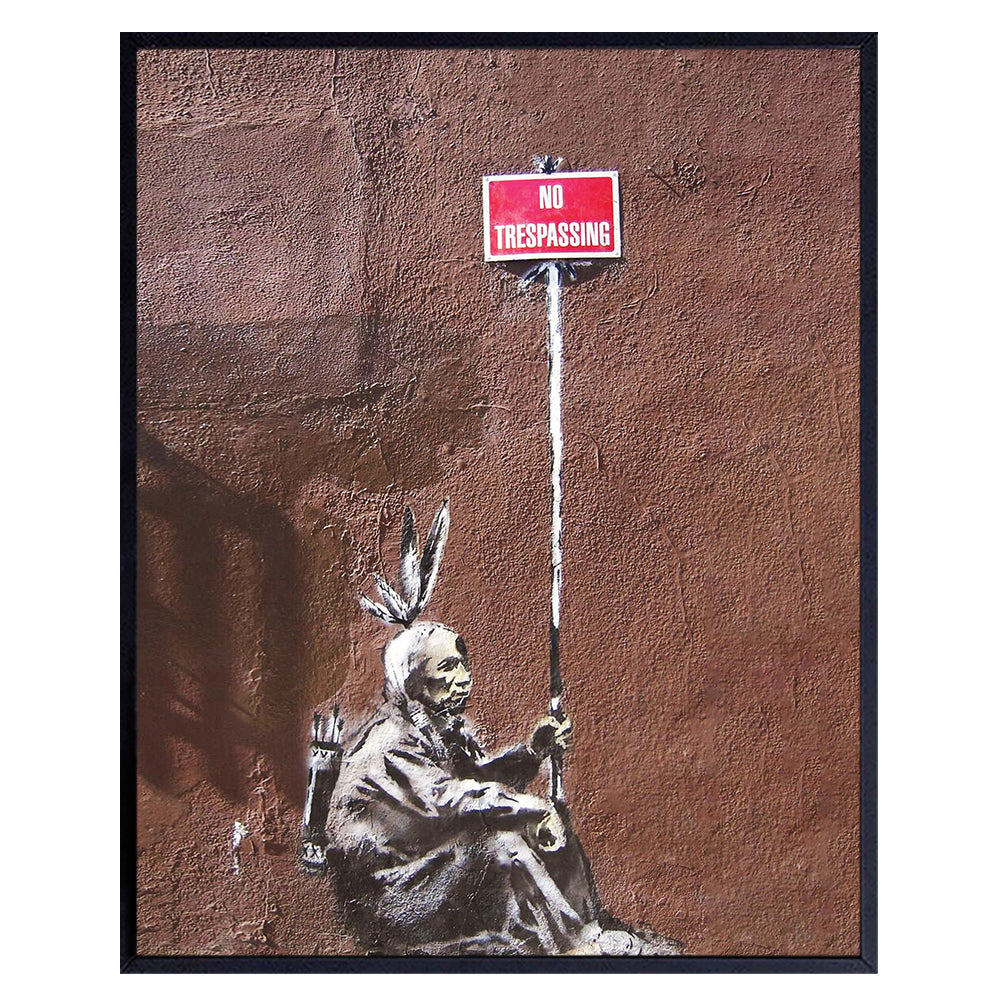 No Trespassing Sign - Banksy Wall Art Poster - 8x10 Urban Street Art Mural Print - Room Decor for Home, Apartment, Dorm, Bedroom, Living Room - Gift for Native American Indian Teens, Graffiti Fan