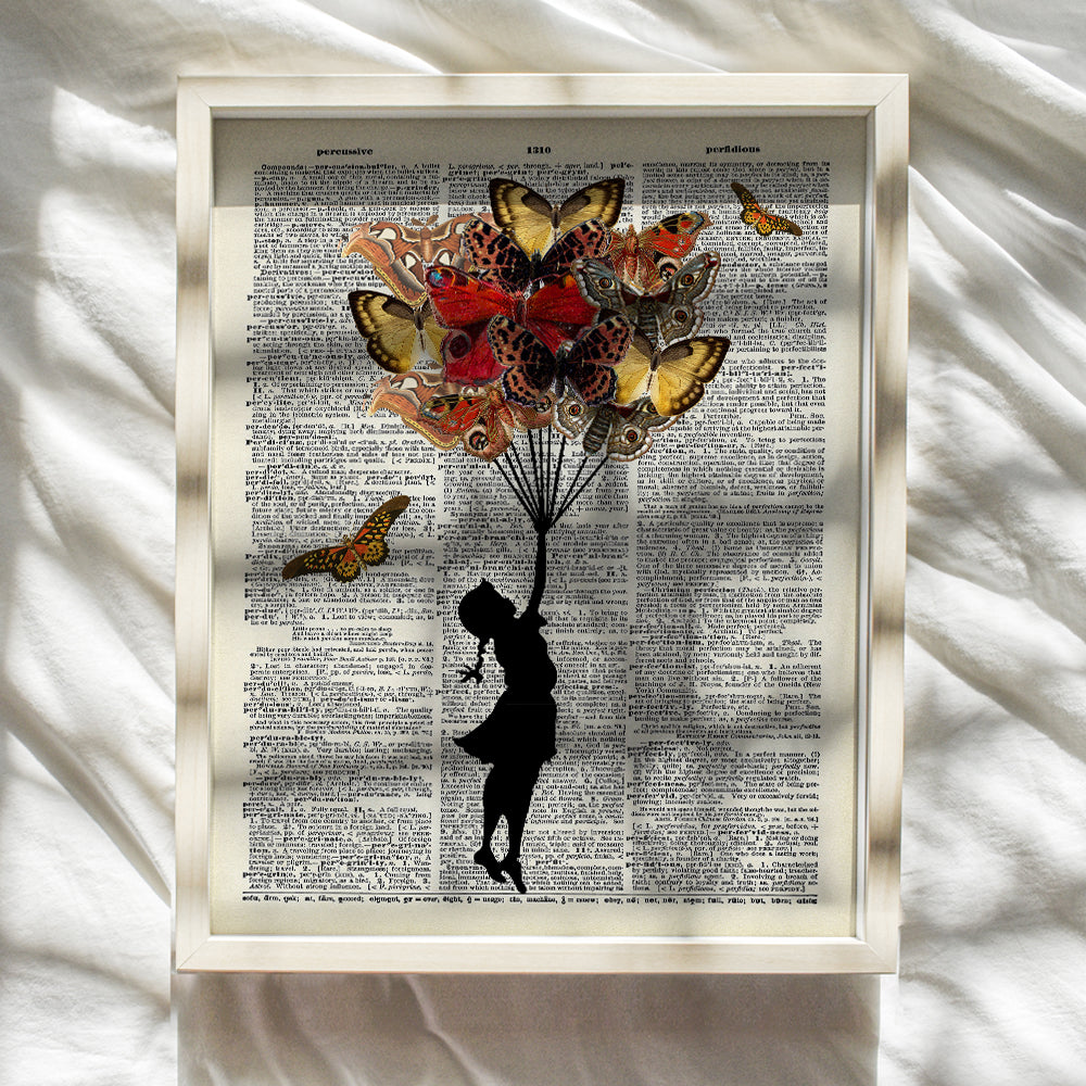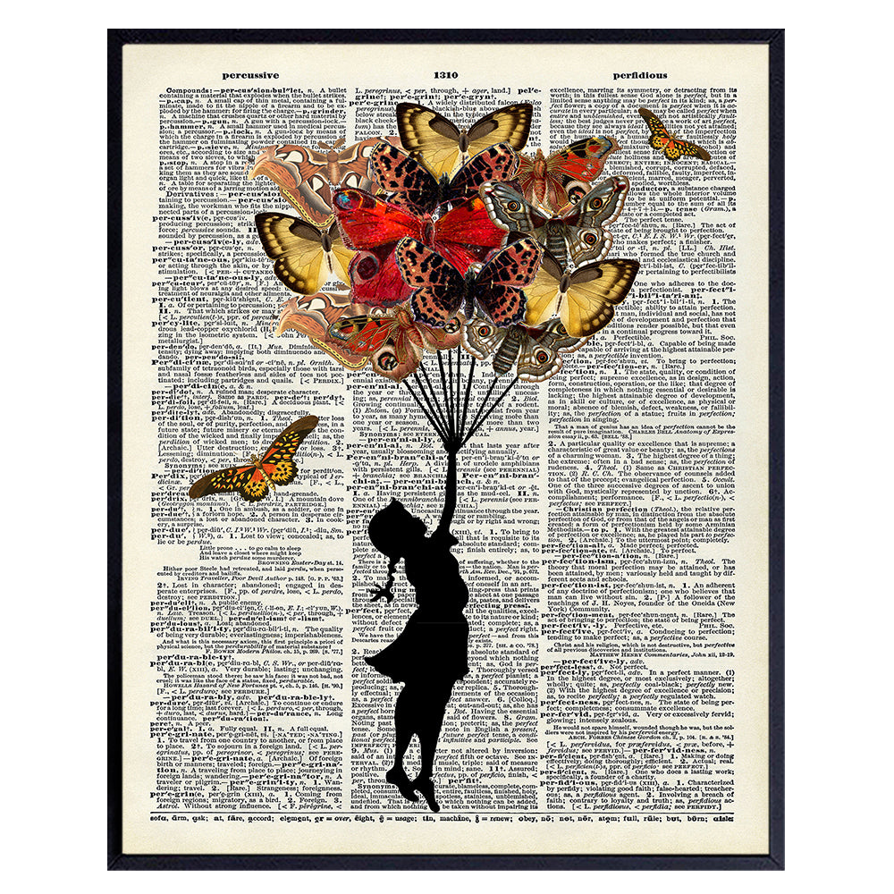 Banksy Wall Art - Butterfly Wall Decor for Women - Banksy Poster - Little Girls Bedroom Decor - Butterfly Wall Art - Dictionary Art