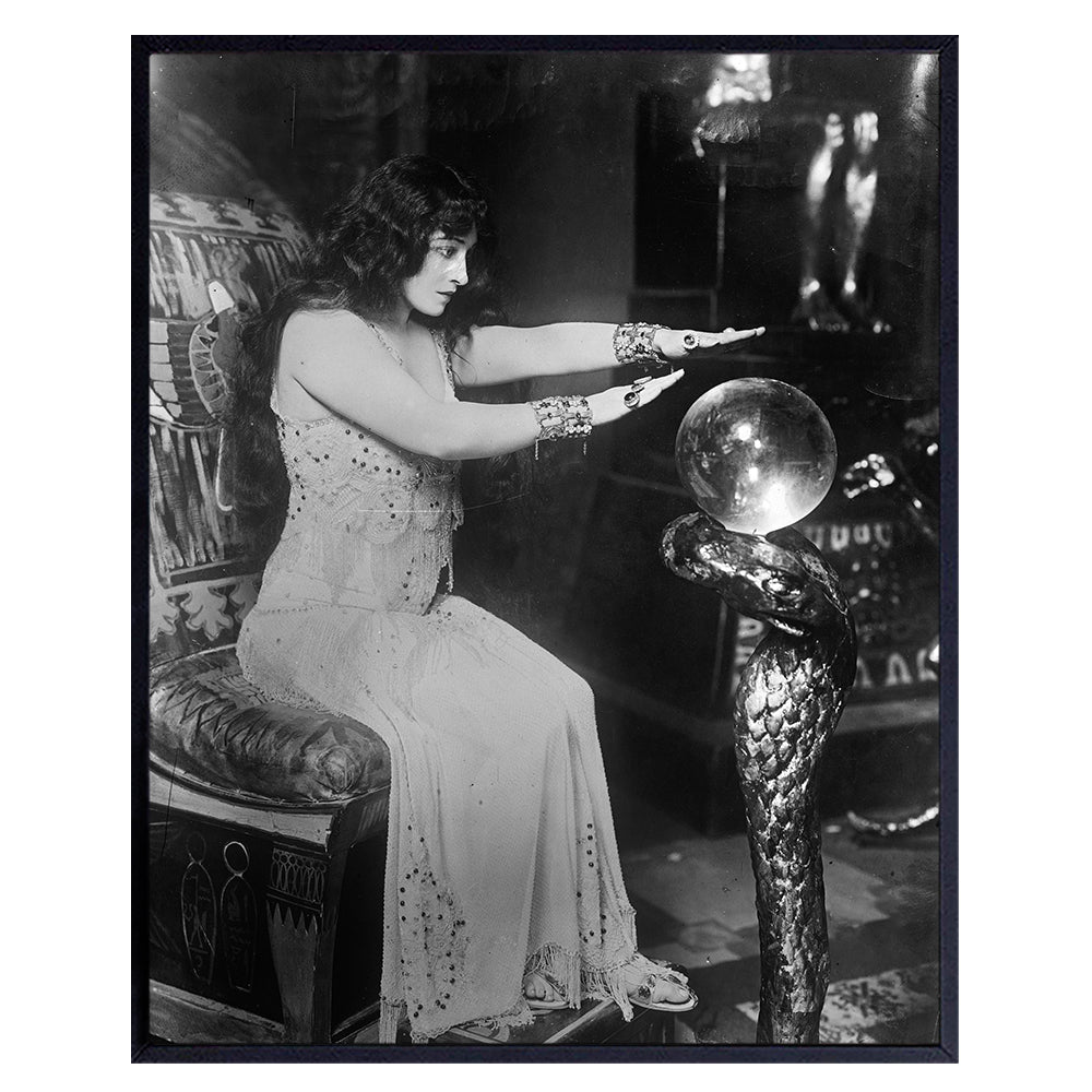 Gothic Home Decor - Goth Wall Art - Vintage Hollywood Poster - 8x10 Creepy Crystal Ball Fortune Teller Psychic Photo - Gift for Wicca, Wiccan, Occult, Horror Movies Fans - UNFRAMED Picture