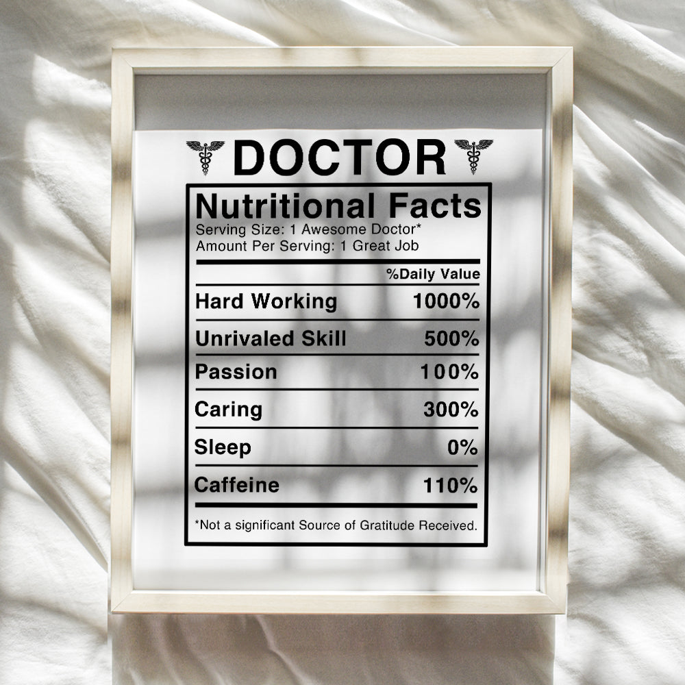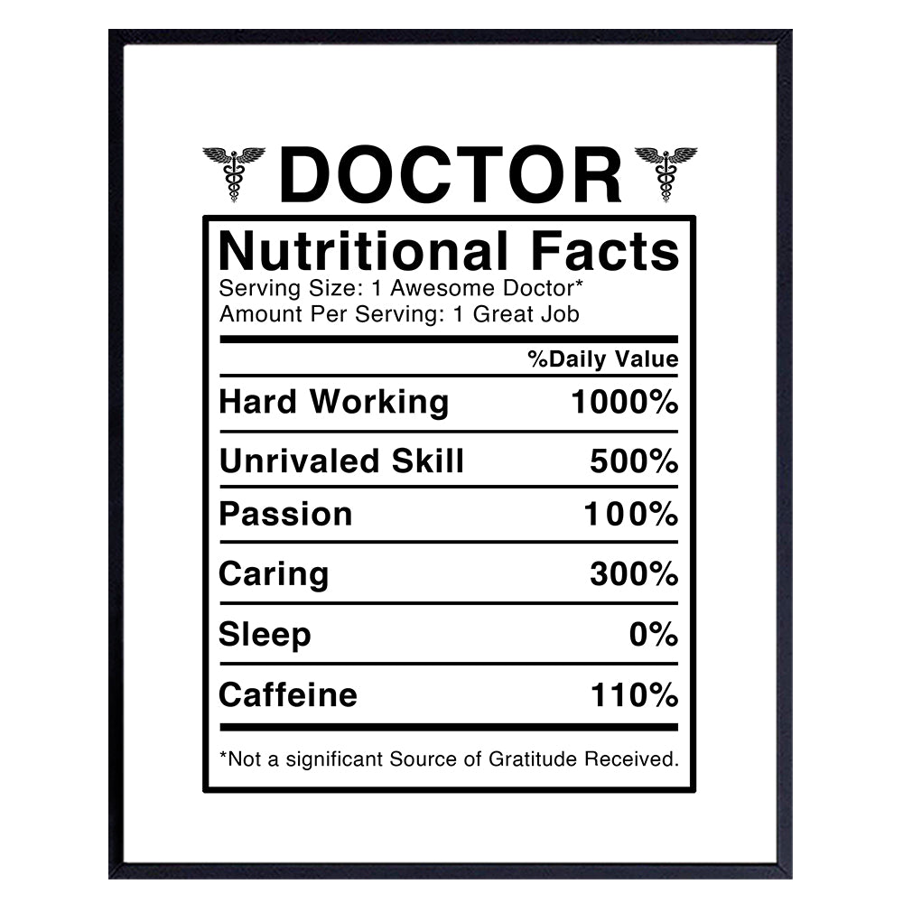 Doctor Nutritional Facts Wall Art - Funny 8x10 Room Decor, Home Decoration for Medical Clinic or Office - Unique Gift for Dr, Physician, Med Student - Unframed Poster Picture Sign Print